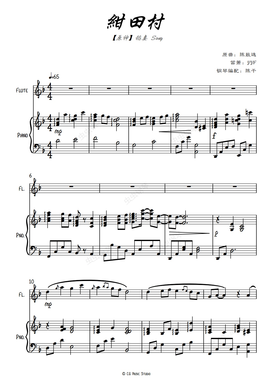 钢琴谱:【原神】稻妻Song-绀田村 | 笛箫&钢琴