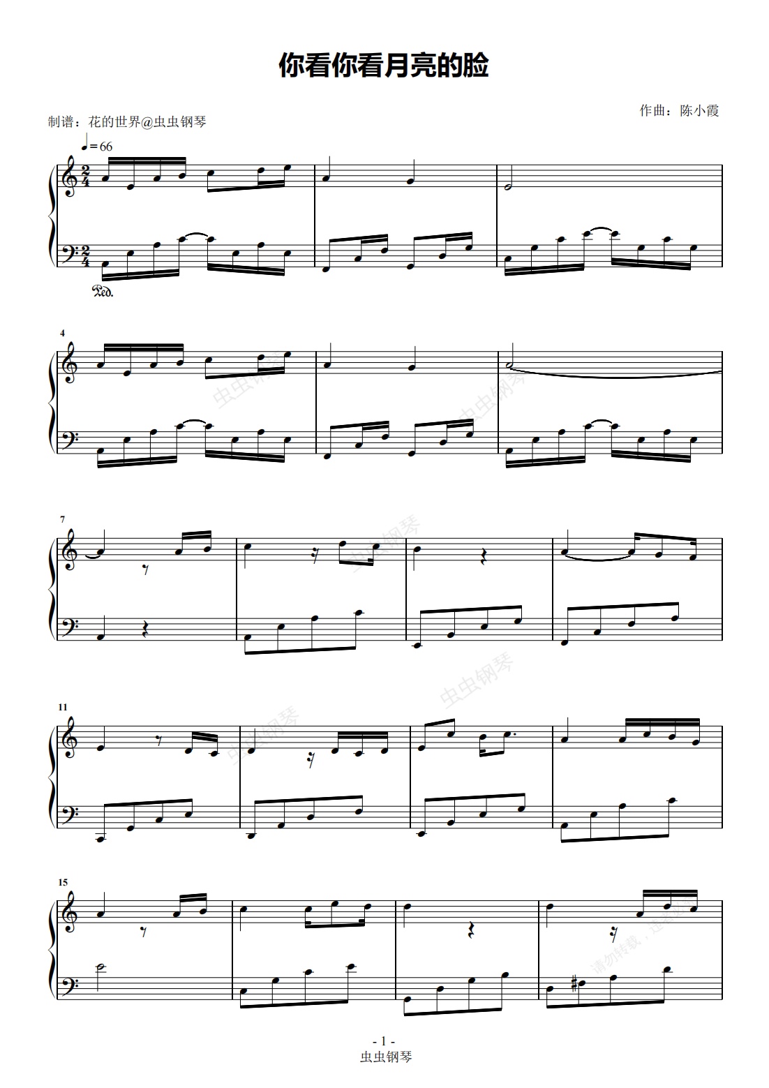 钢琴谱:你看你看月亮的脸 C调简易版 孟庭苇 (月亮 陈慧娴) 流行经典