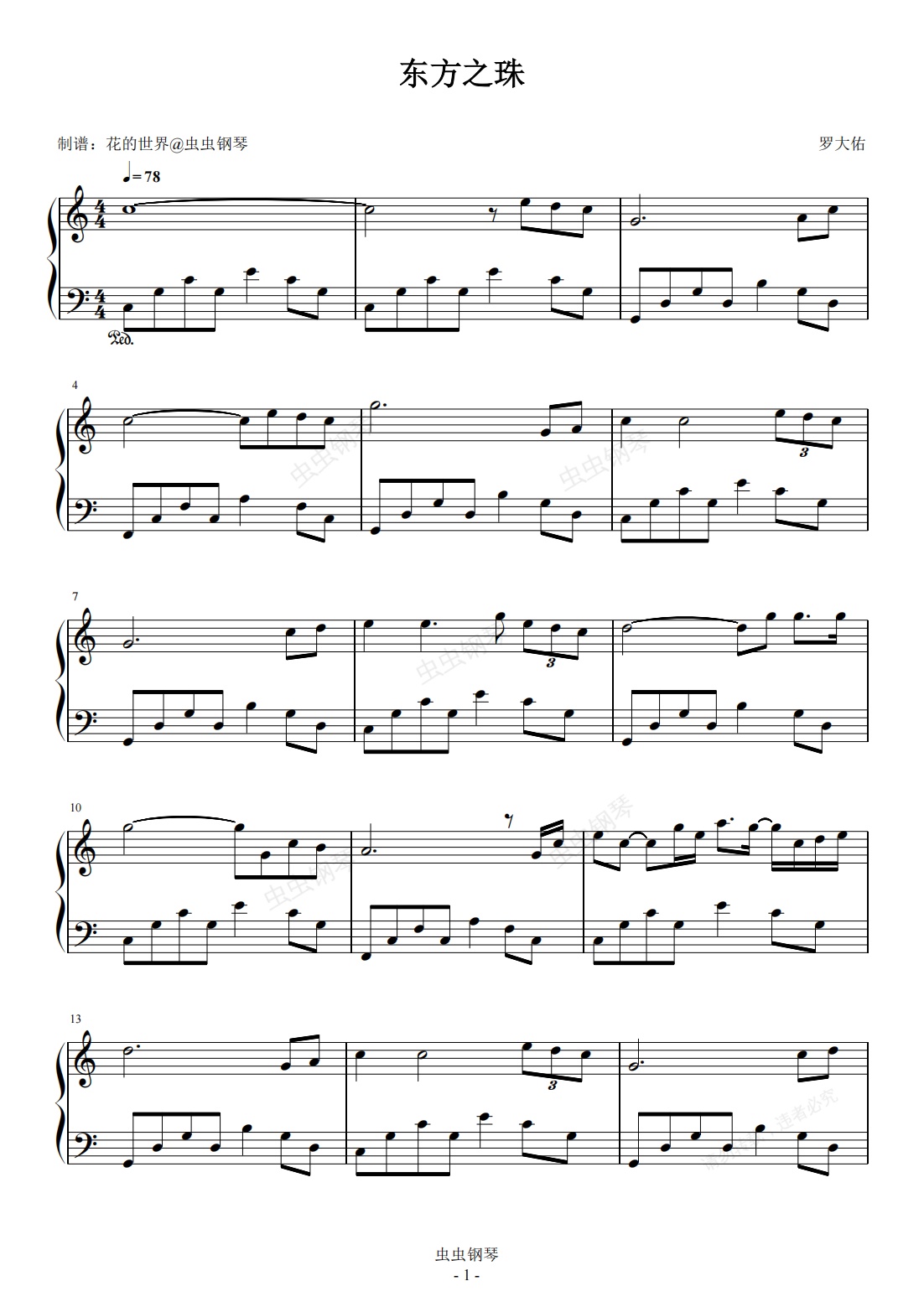 钢琴谱:东方之珠 C调简易版 刘德华 罗大佑