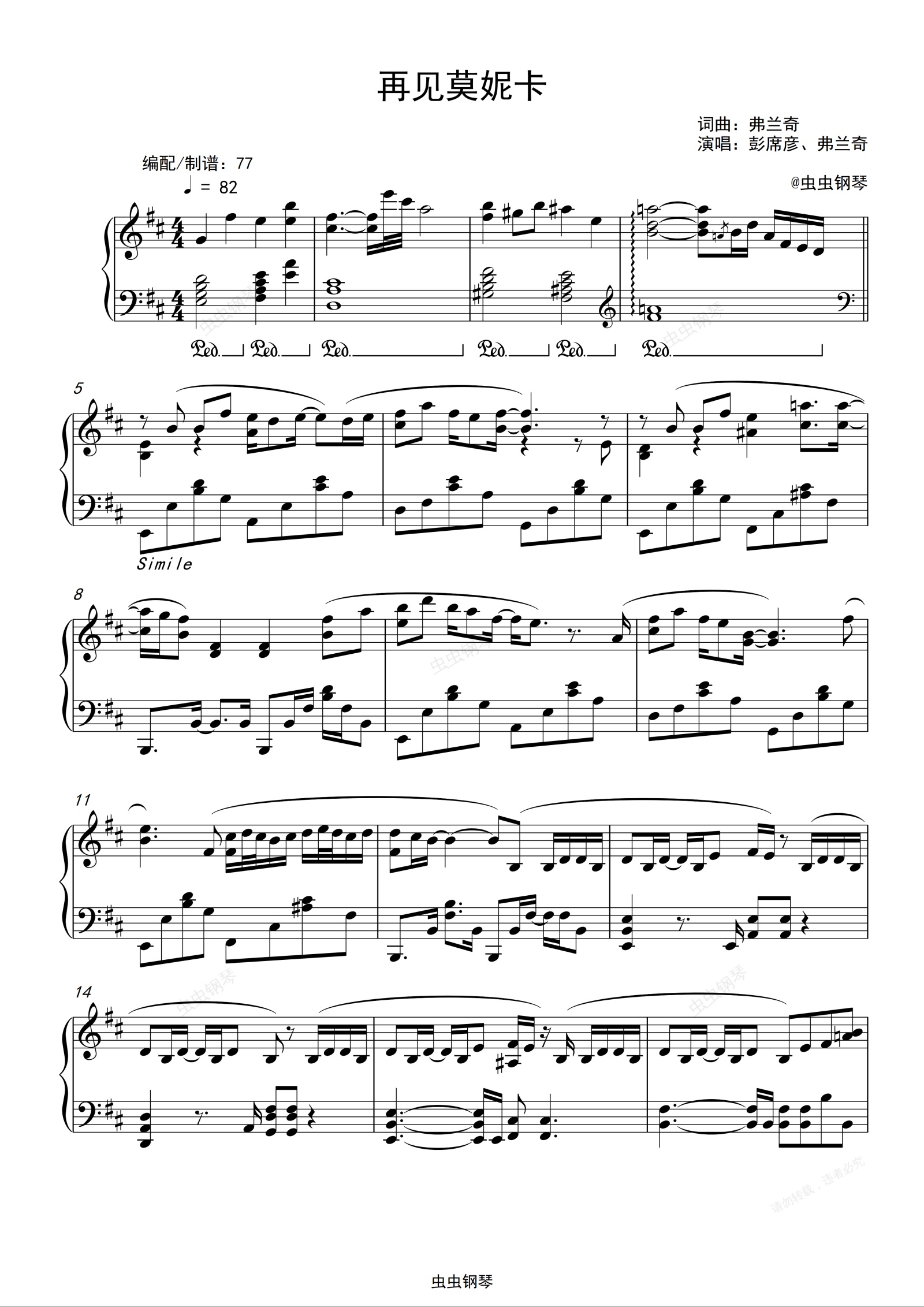 钢琴谱:《再见莫妮卡》-彭席彦&Franky