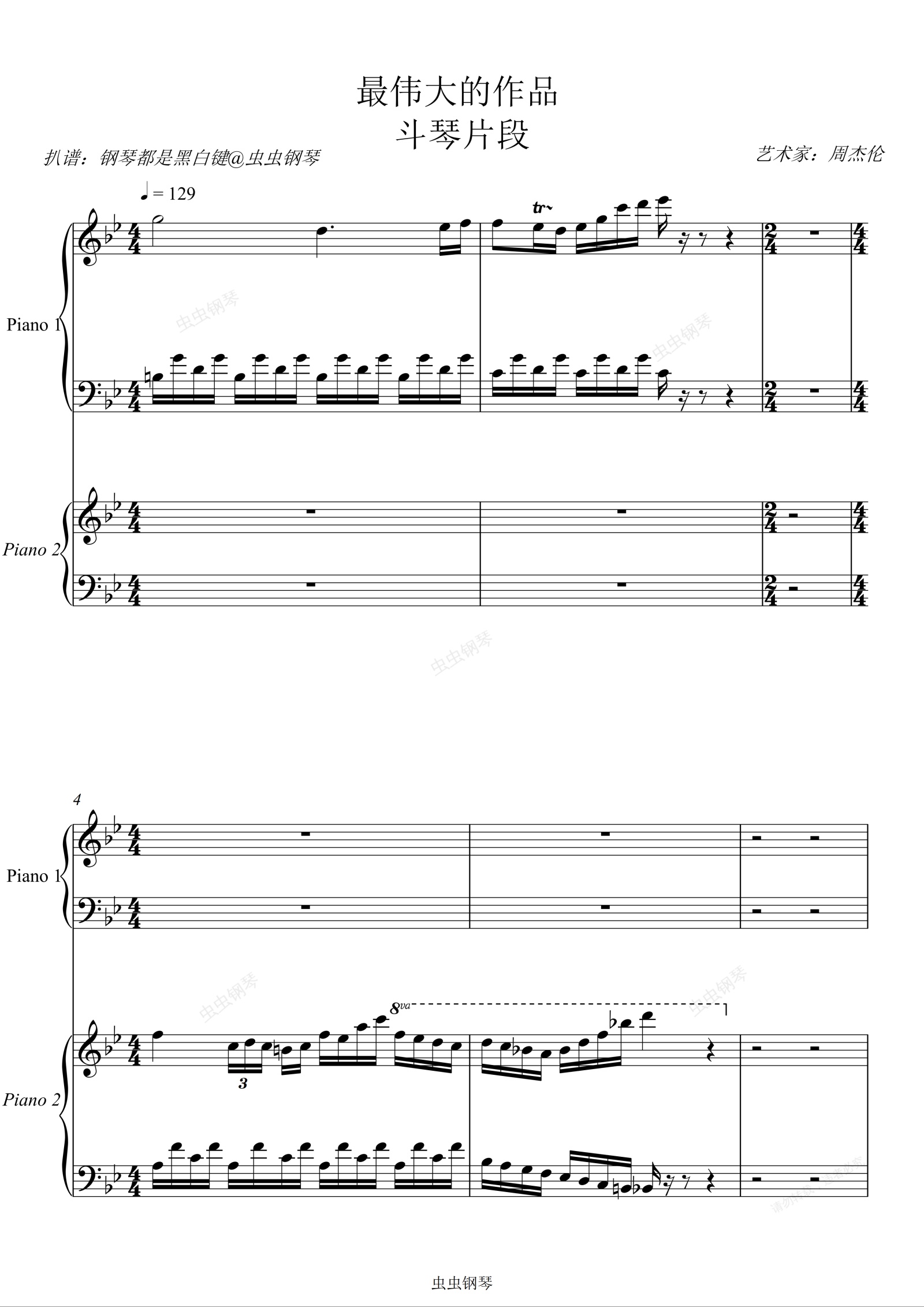 钢琴谱:最伟大的作品 - 周杰伦 斗琴片段 【极限还原】