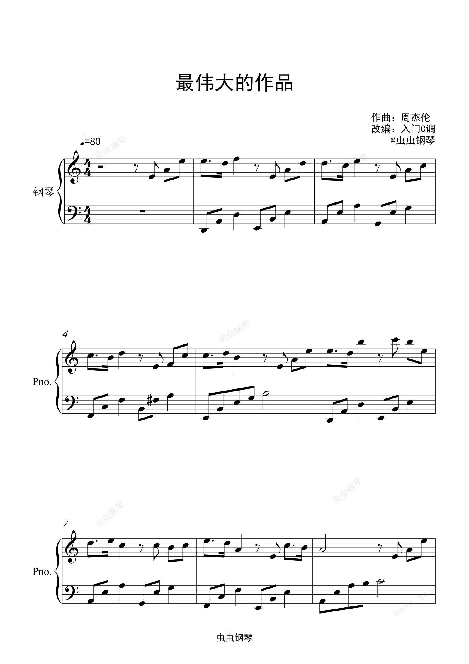 钢琴谱:周杰伦《最伟大的作品》(副歌)入门C调简单版
