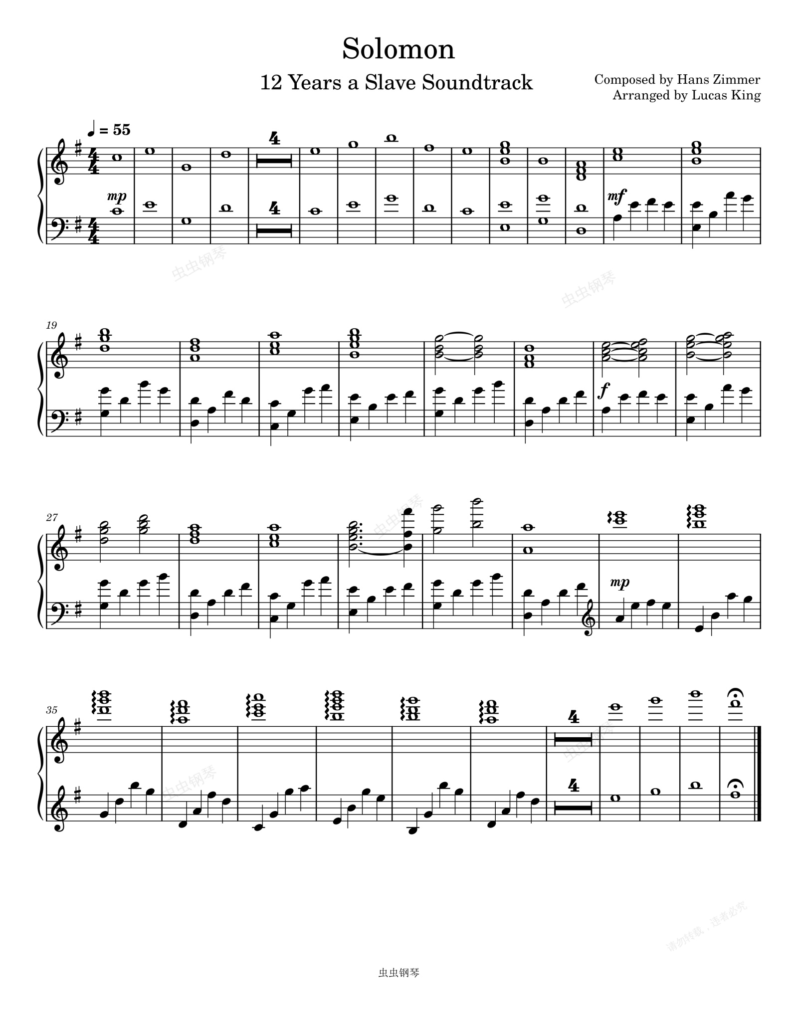 钢琴谱:为奴十二年 电影-Solomon-Hans Zimmer