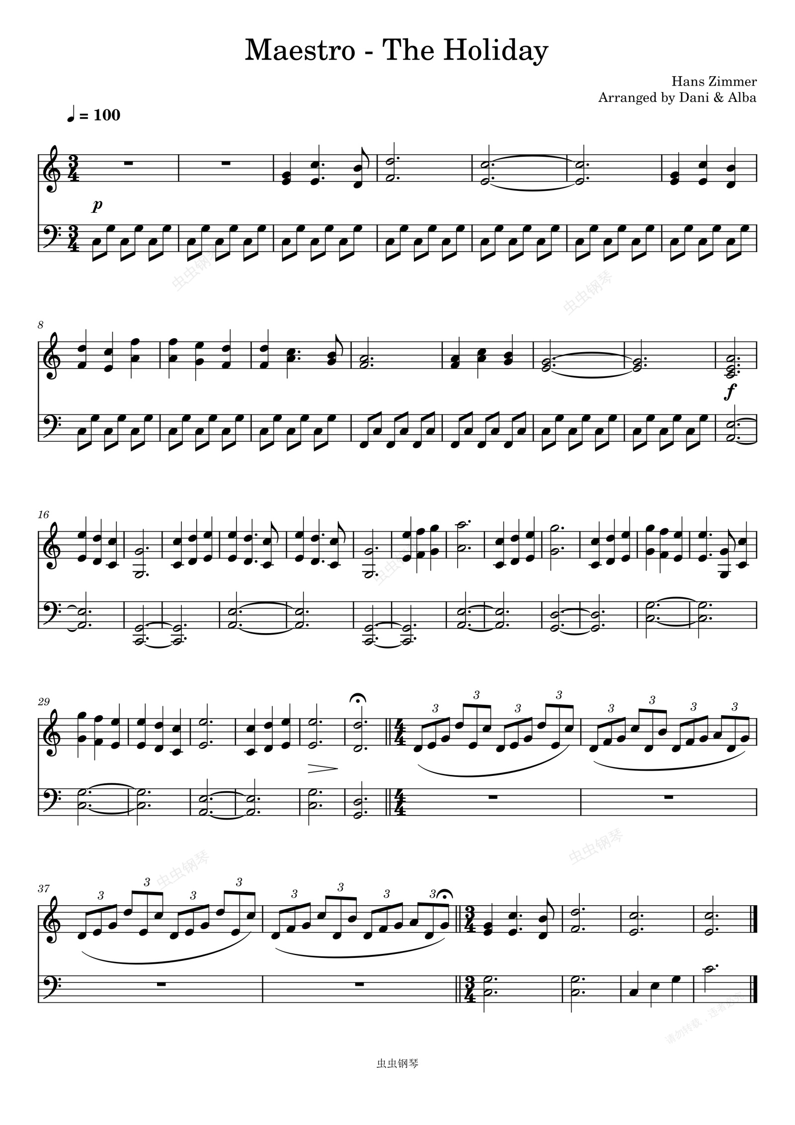 钢琴谱:恋爱假期 电影-Maestro - The Holiday-Hans Zimmer