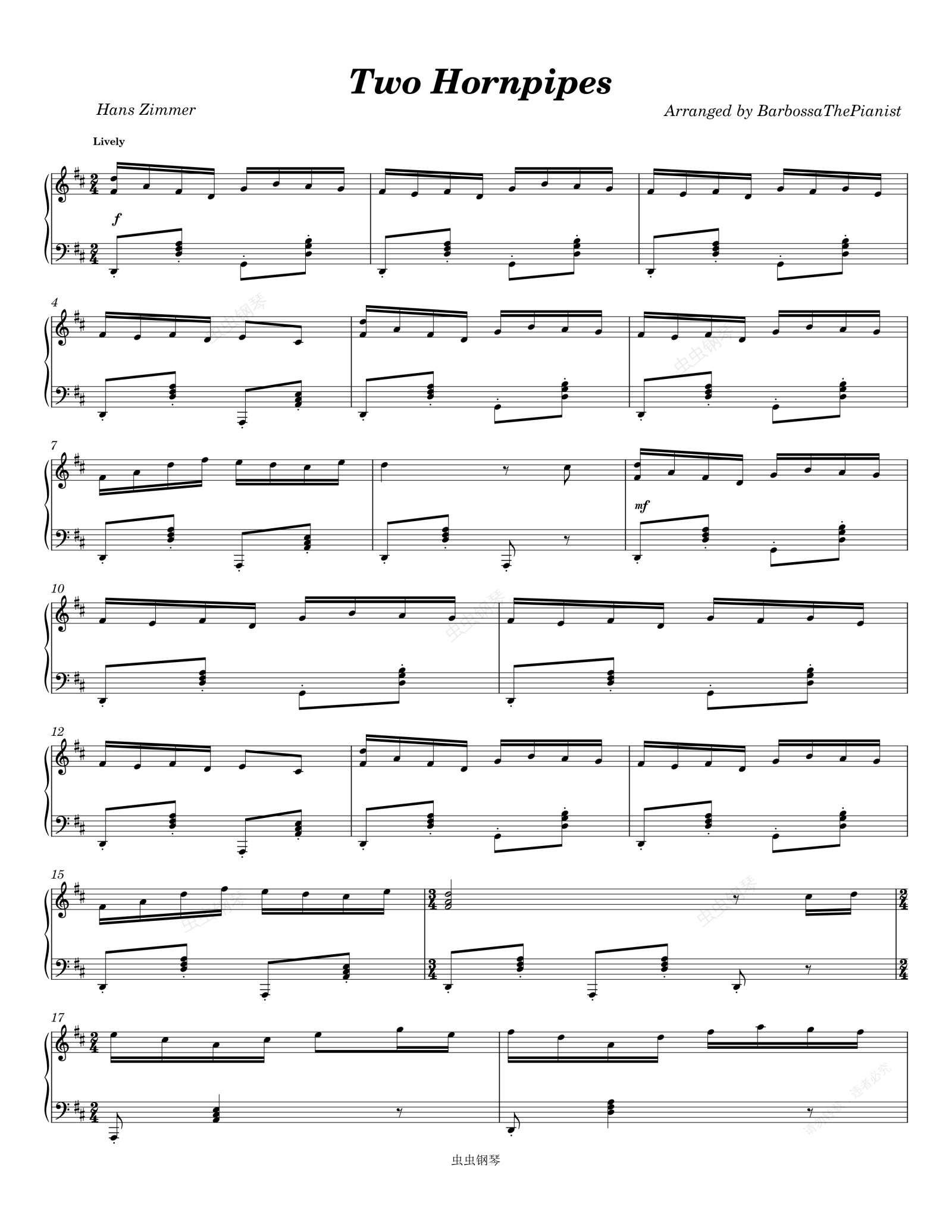 钢琴谱:加勒比海盗 电影-Two Hornpipes-Hans Zimmer