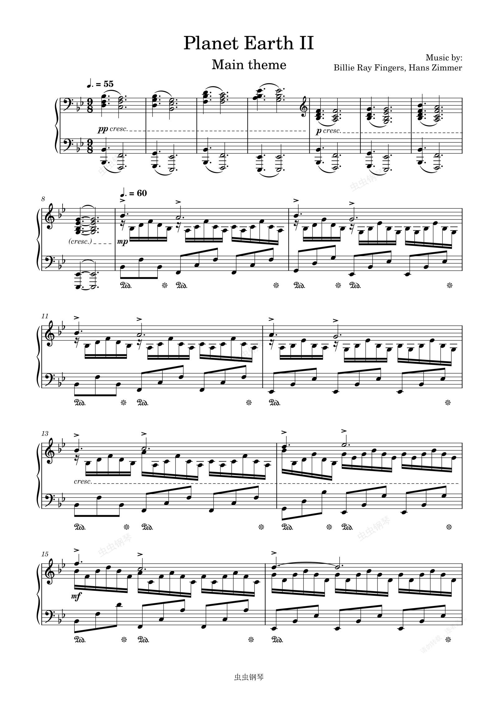 钢琴谱:地球脉动2 纪录片 - Planet Earth II Suite-Hans Zimmer