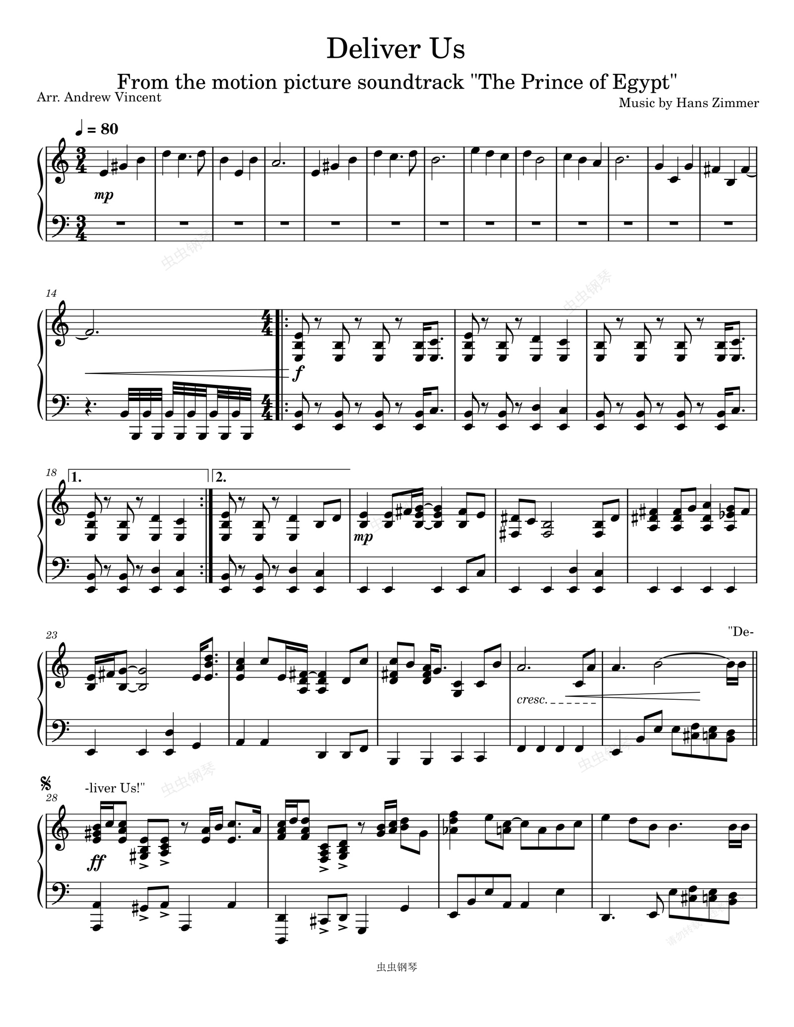 钢琴谱:埃及王子 动画电影-Deliver Us-Hans Zimmer