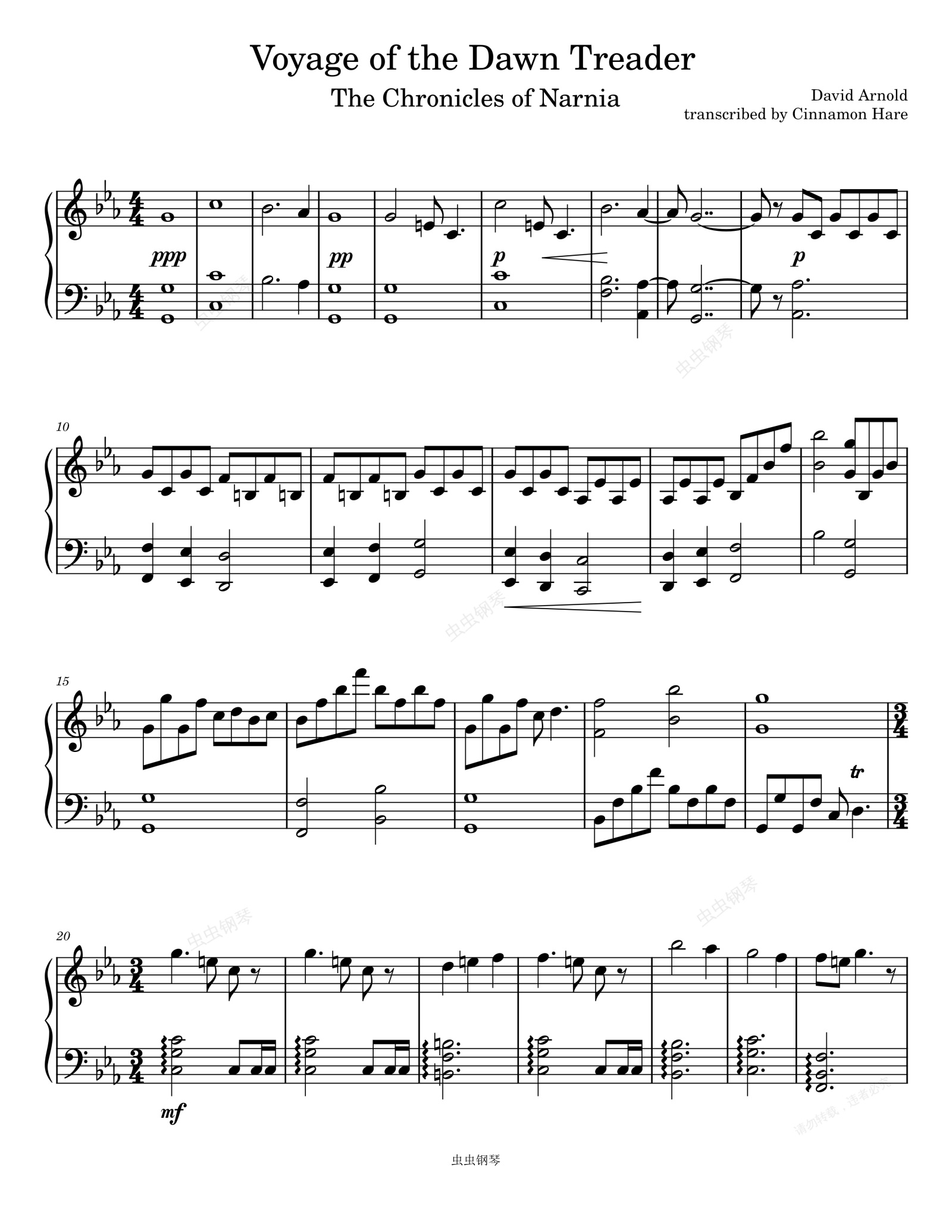 钢琴谱:纳尼亚传奇 电影-Voyage of the Dawn Treader