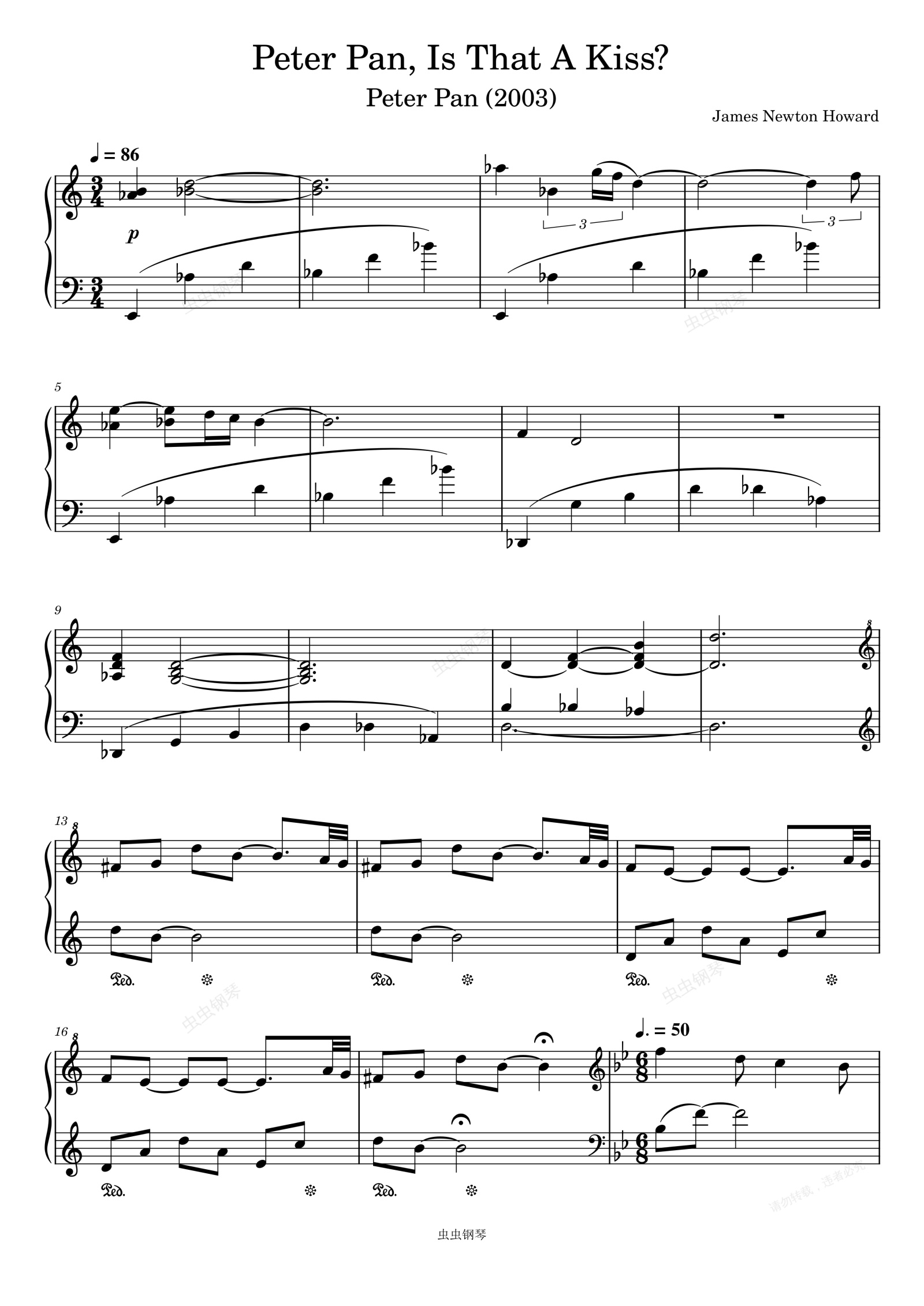 钢琴谱:小飞侠彼得潘 电影-Peter Pan- Is That A Kiss?