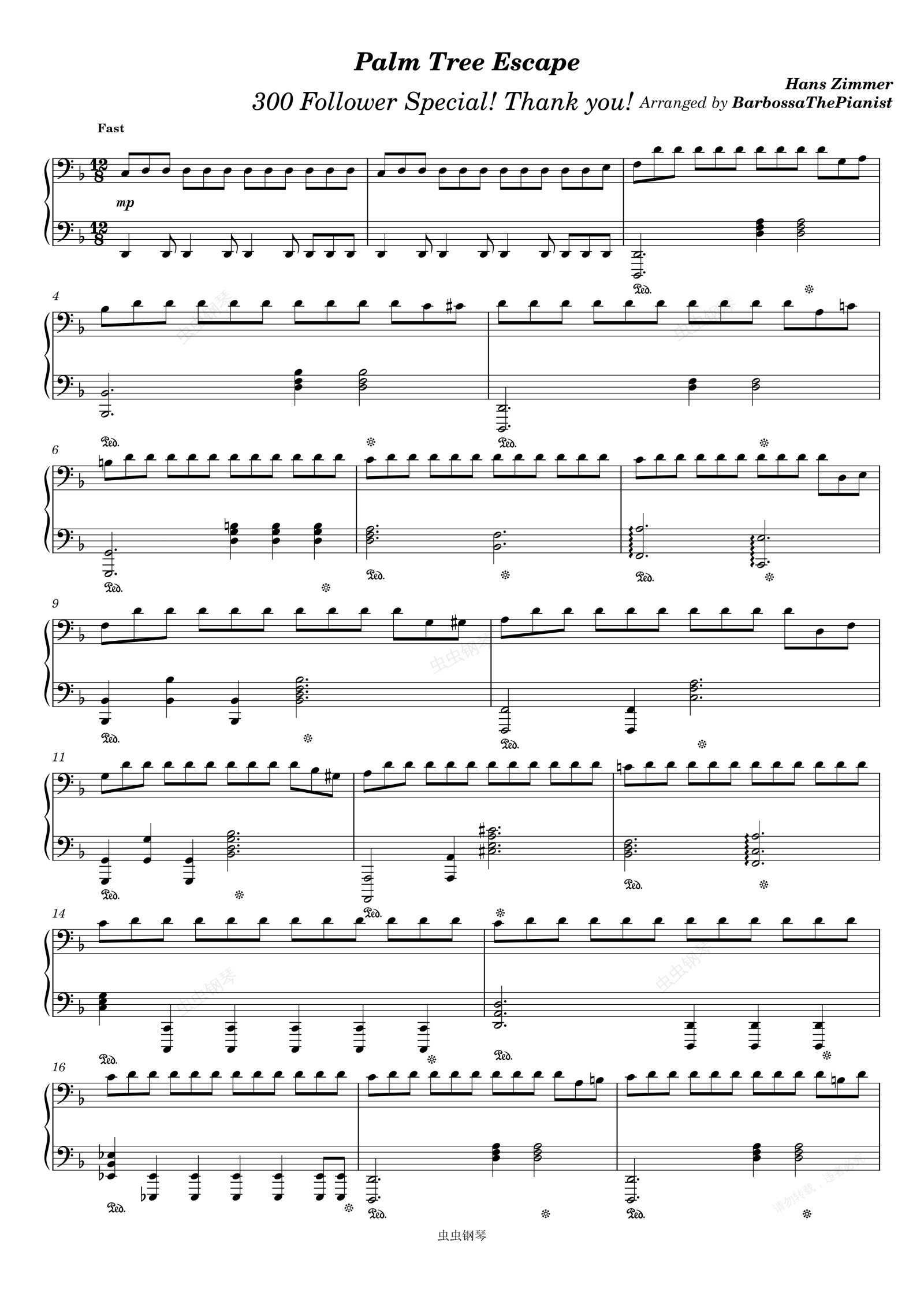 钢琴谱:加勒比海盗 电影-Palm Tree Escape-Hans Zimmer