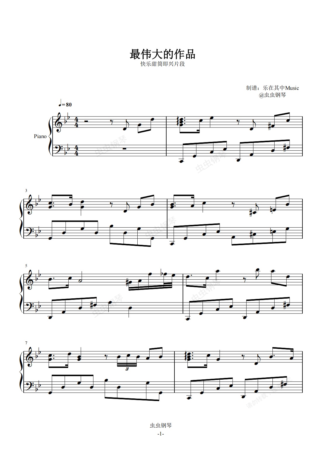 钢琴谱:最伟大的作品
