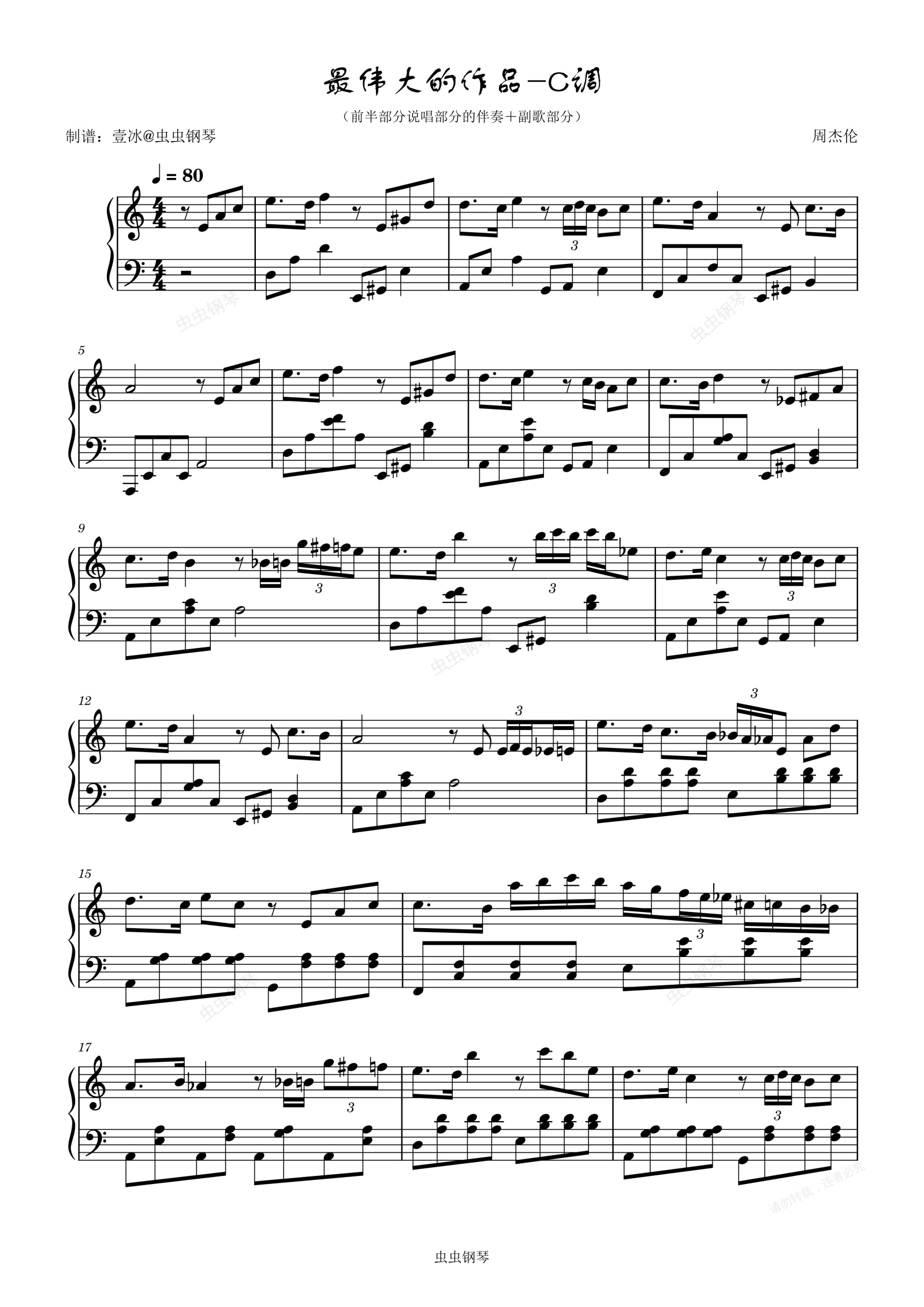 钢琴谱:最伟大的作品//说唱部分的伴奏+副歌部分-C调