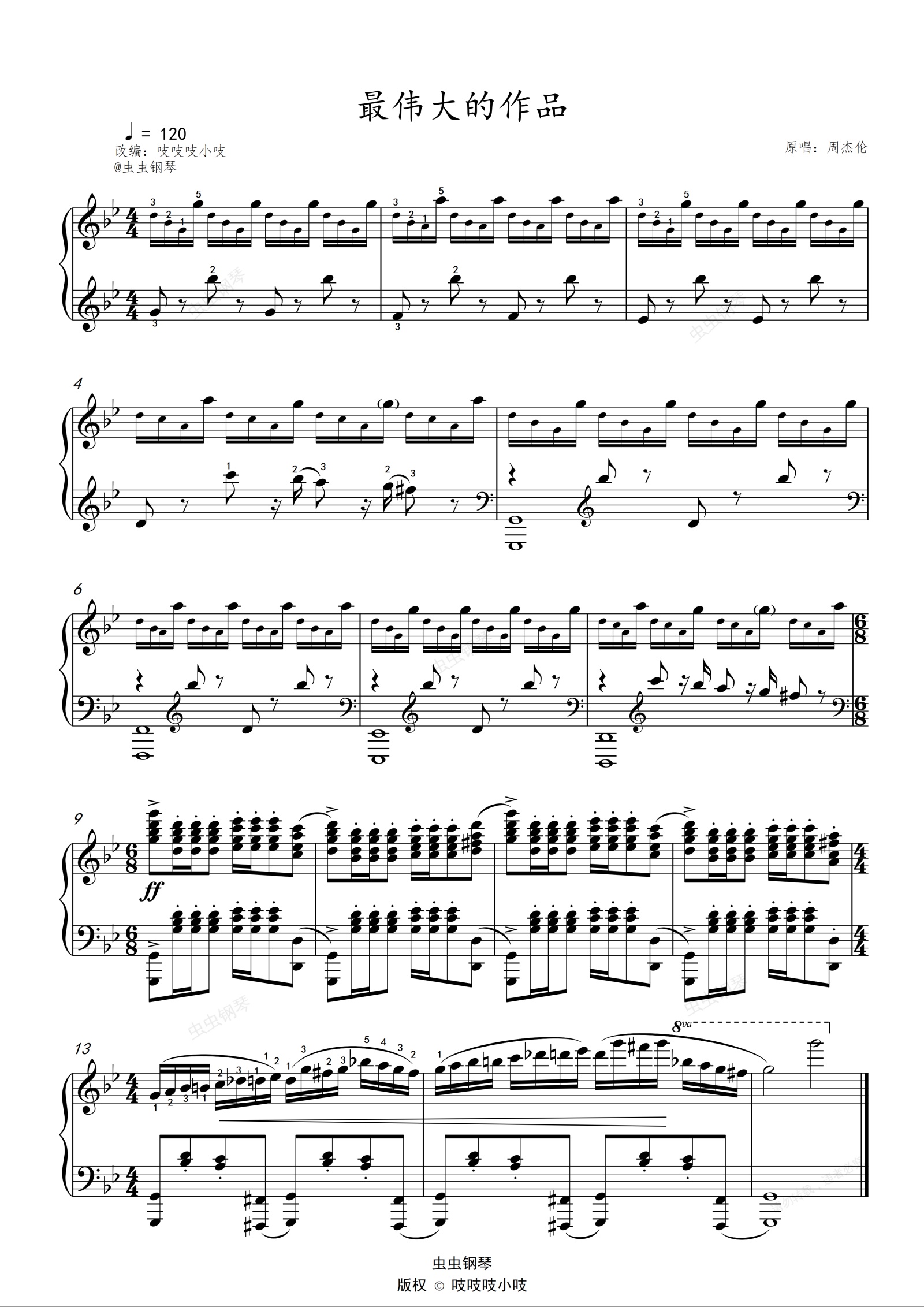 钢琴谱:最伟大的作品 原调指法(前奏)