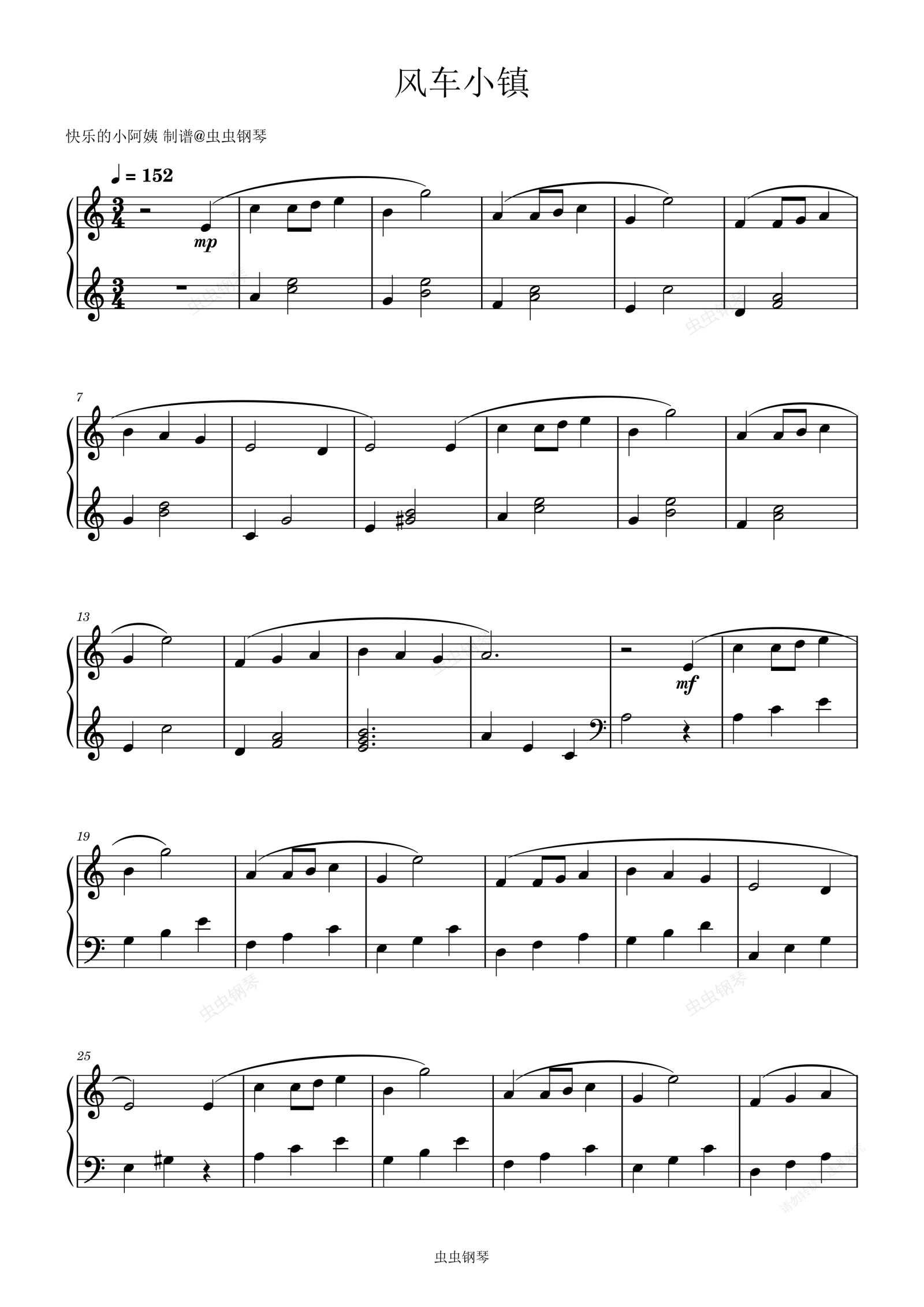 钢琴谱:风车小/Town of Windmill镇-C调简易版