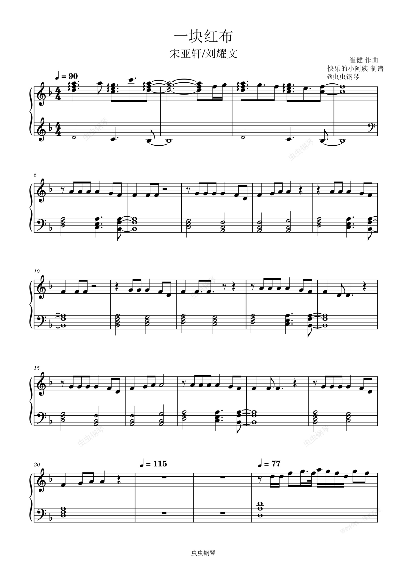 钢琴谱:一块红布-宋亚轩/刘耀文F调