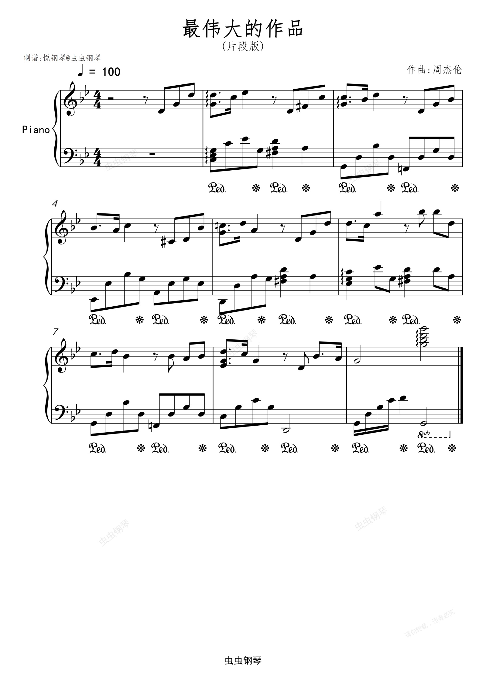 钢琴谱:最伟大的作品 (免费乐谱)片段版