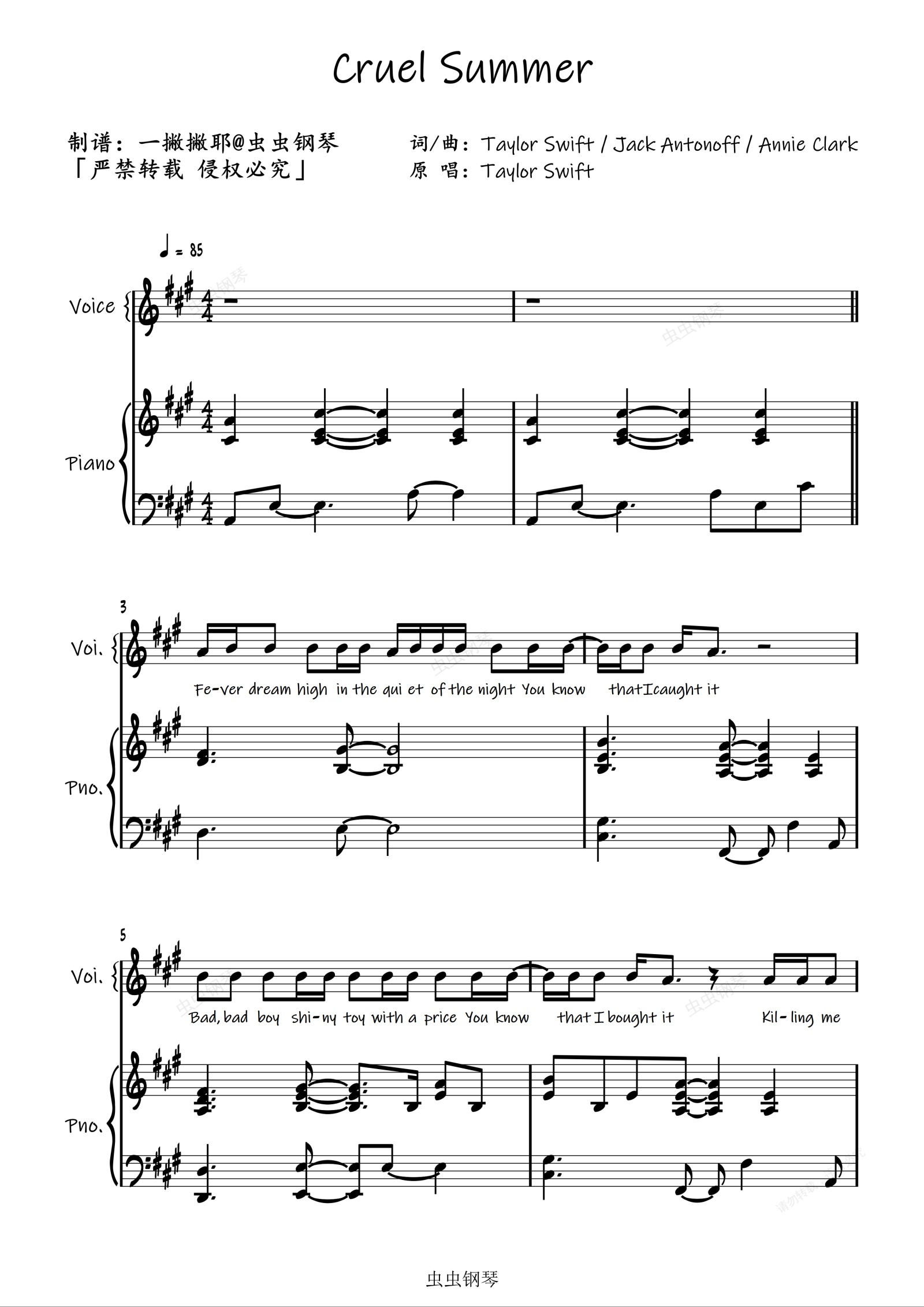 钢琴谱:Cruel Summer【弹唱附歌词】Taylor Swift「一撇撇耶」