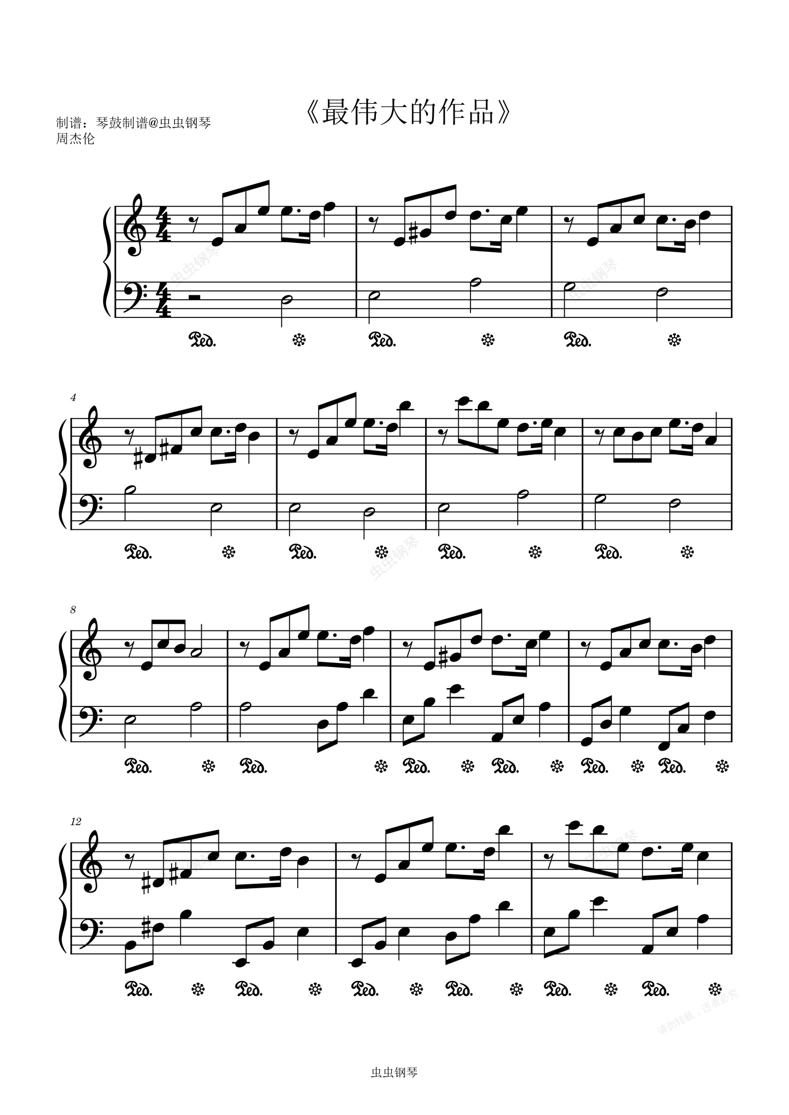 钢琴谱:琴鼓制谱《最伟大的作品》精简版 成人版 初学版