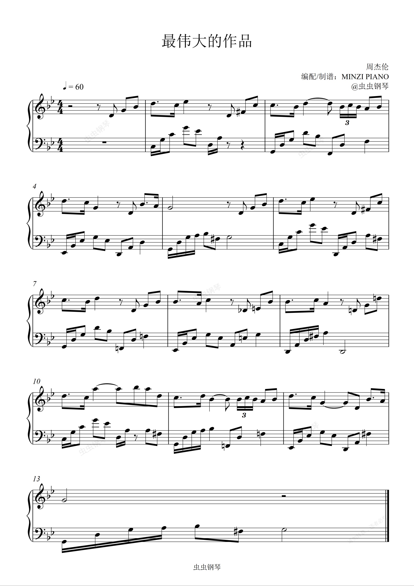 钢琴谱:周杰伦 《最伟大的作品》