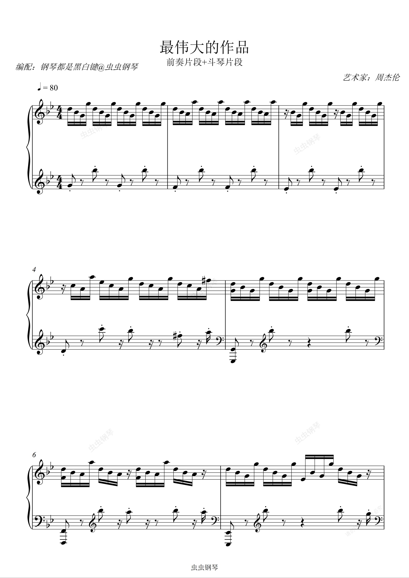 钢琴谱:最伟大的作品 -周杰伦【前奏独奏+斗琴片段独奏】