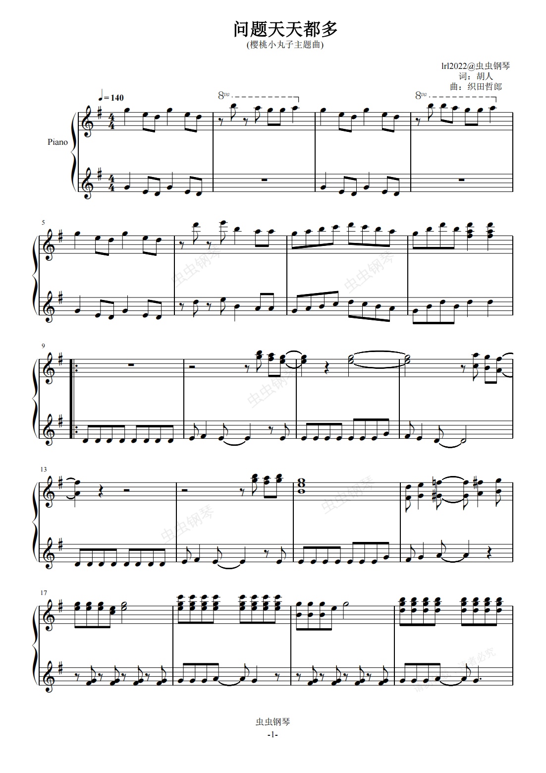 钢琴谱:问题天天都多-樱桃小丸子主题曲-大家来跳舞