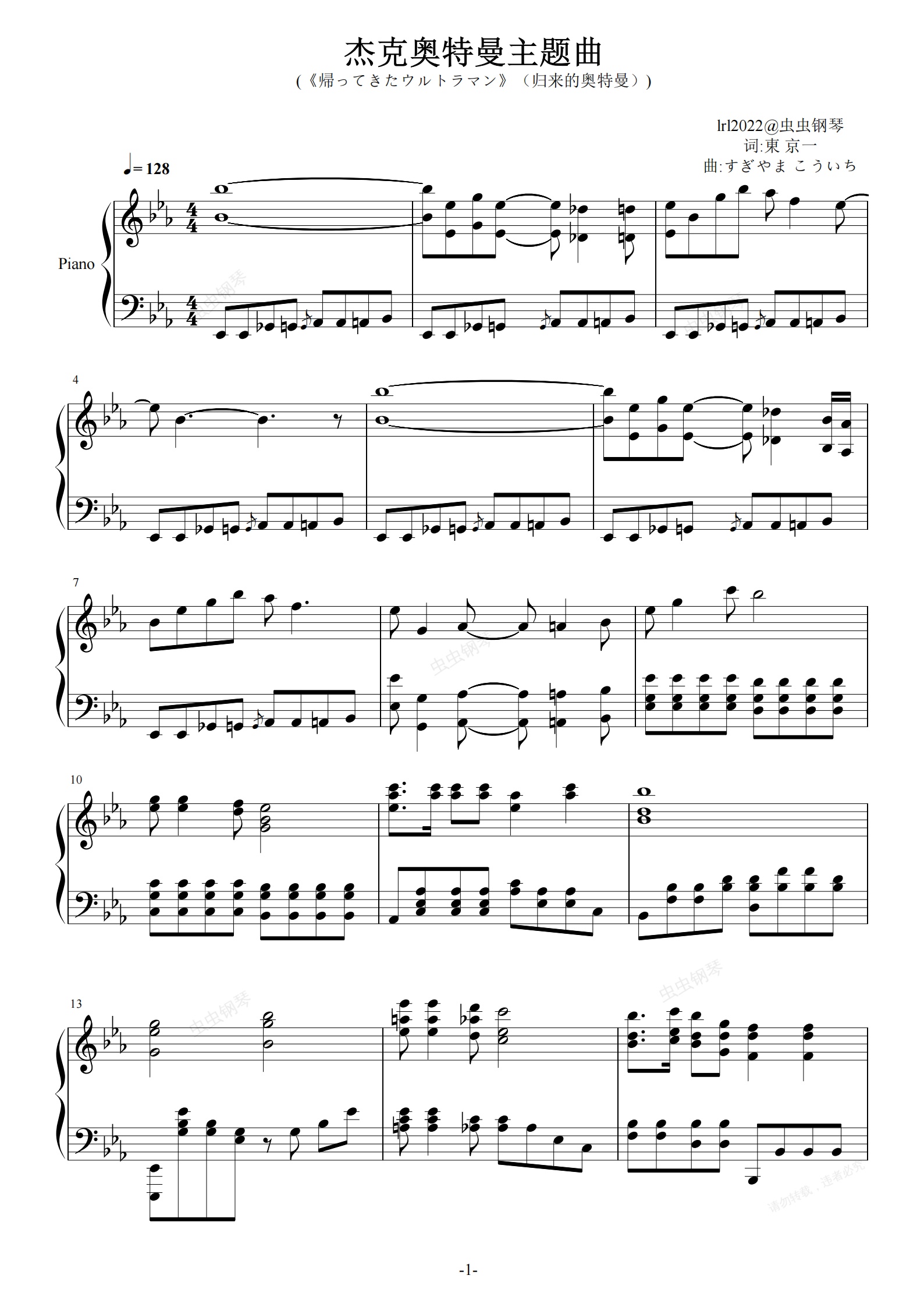 钢琴谱:杰克奥特曼主题曲-《帰ってきたウルトラマン》(归来的奥特曼)