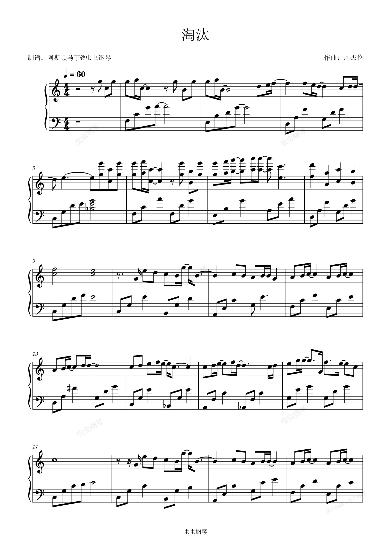 钢琴谱:淘汰 - 陈奕迅【初学简易版】