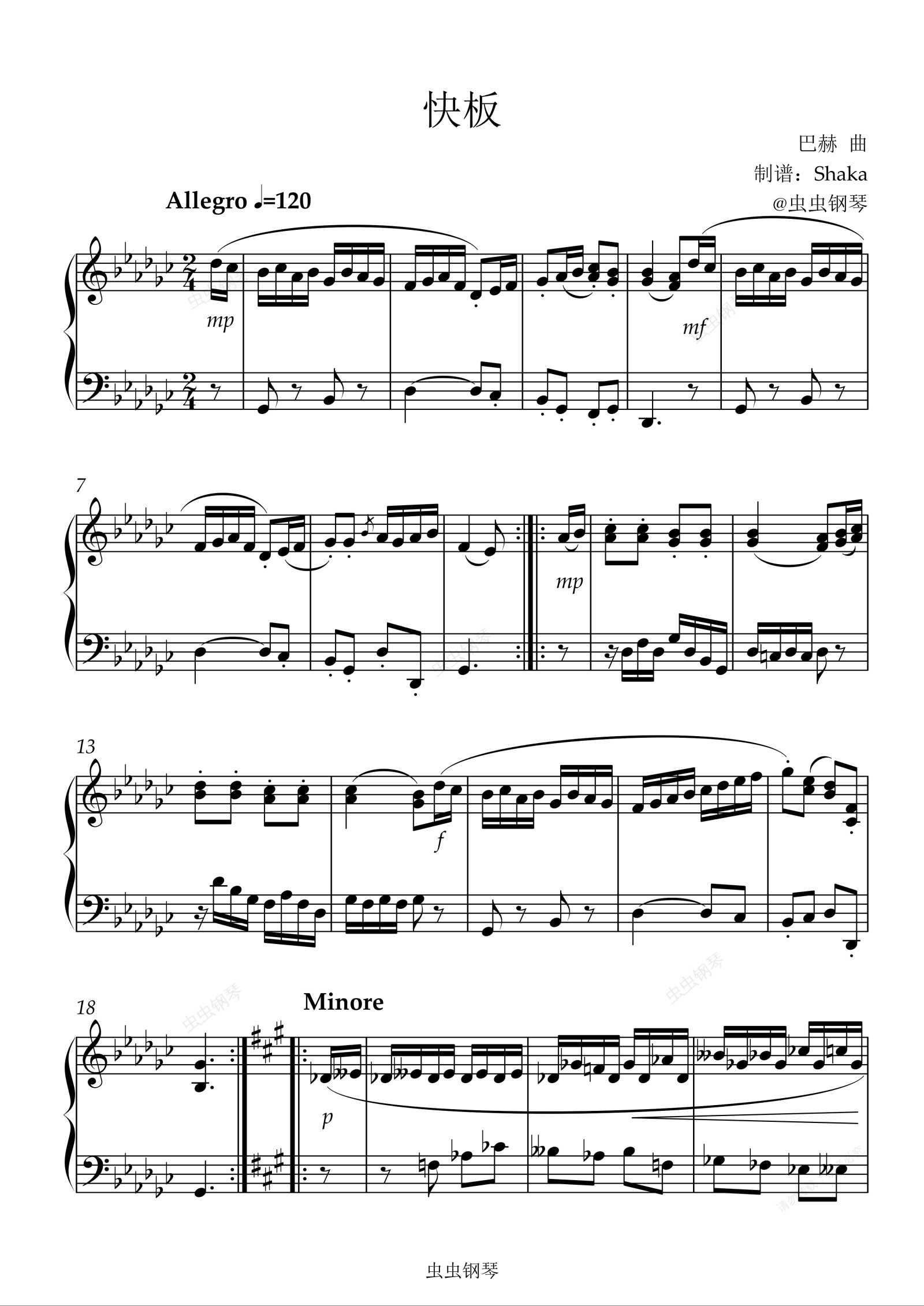 钢琴谱:快板 巴赫 降G调较难版 上海音乐学院2020版5级考级曲目