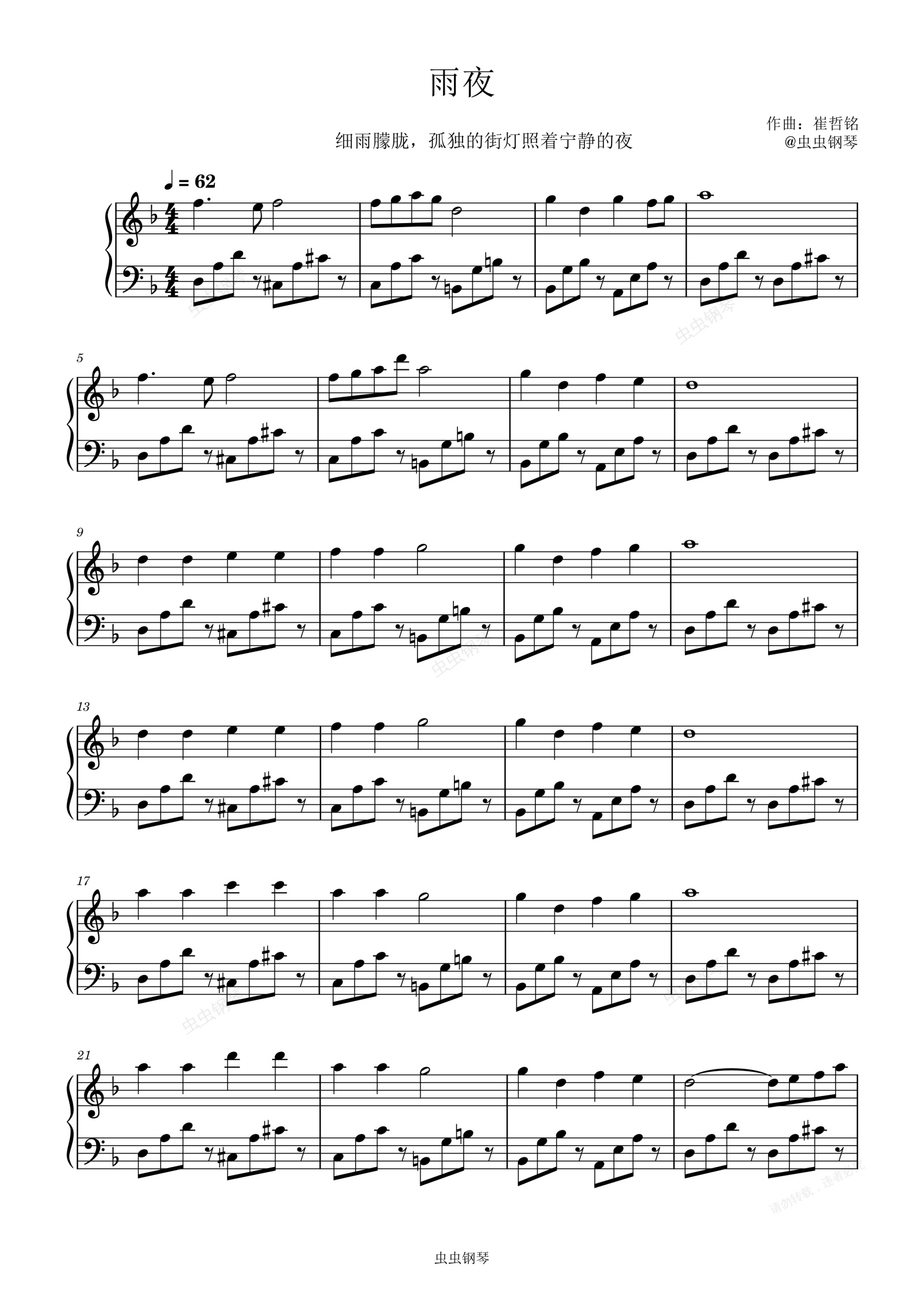 钢琴谱:雨夜-崔哲铭