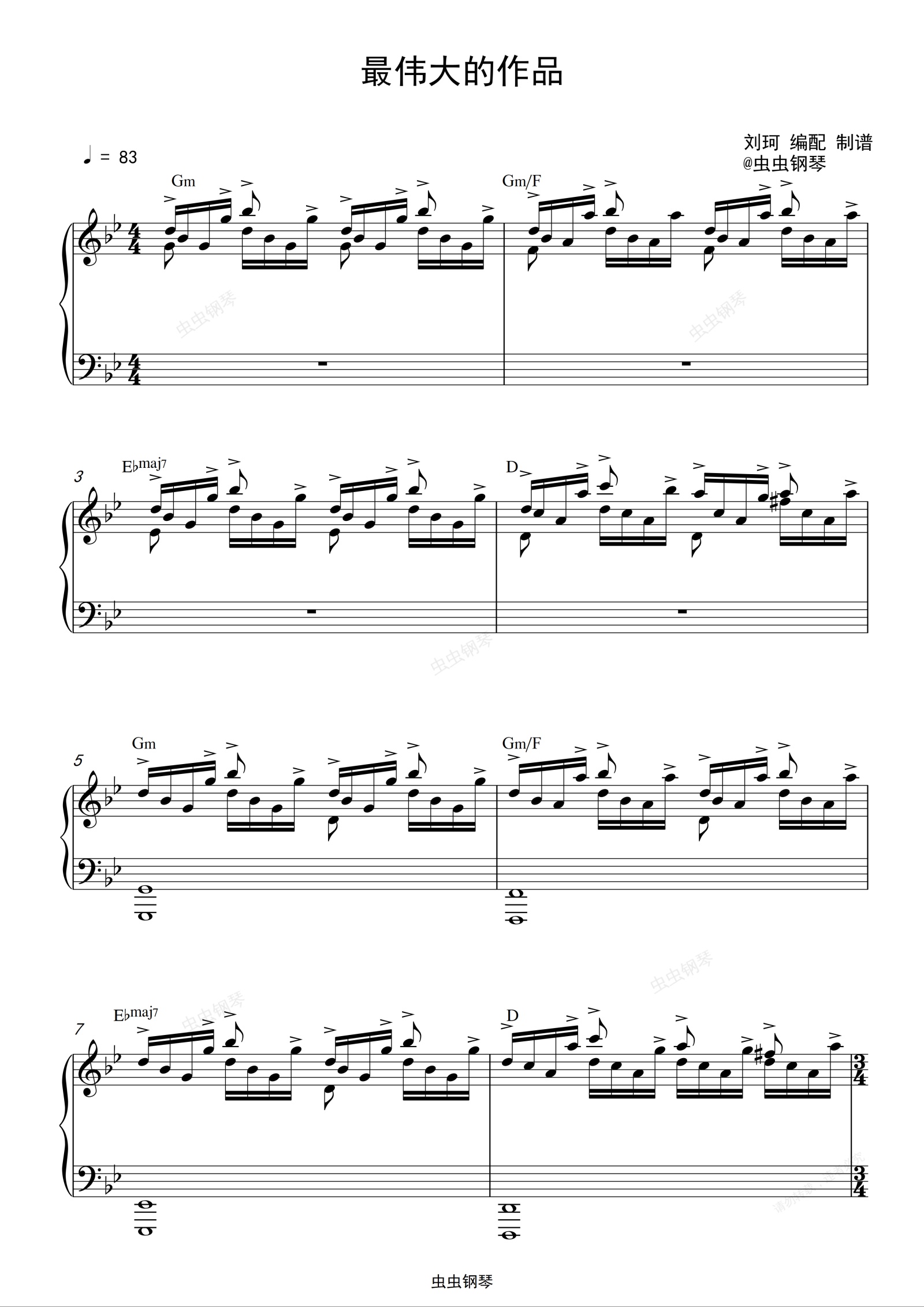 钢琴谱:《最伟大的作品》 周杰伦 弹唱完整版