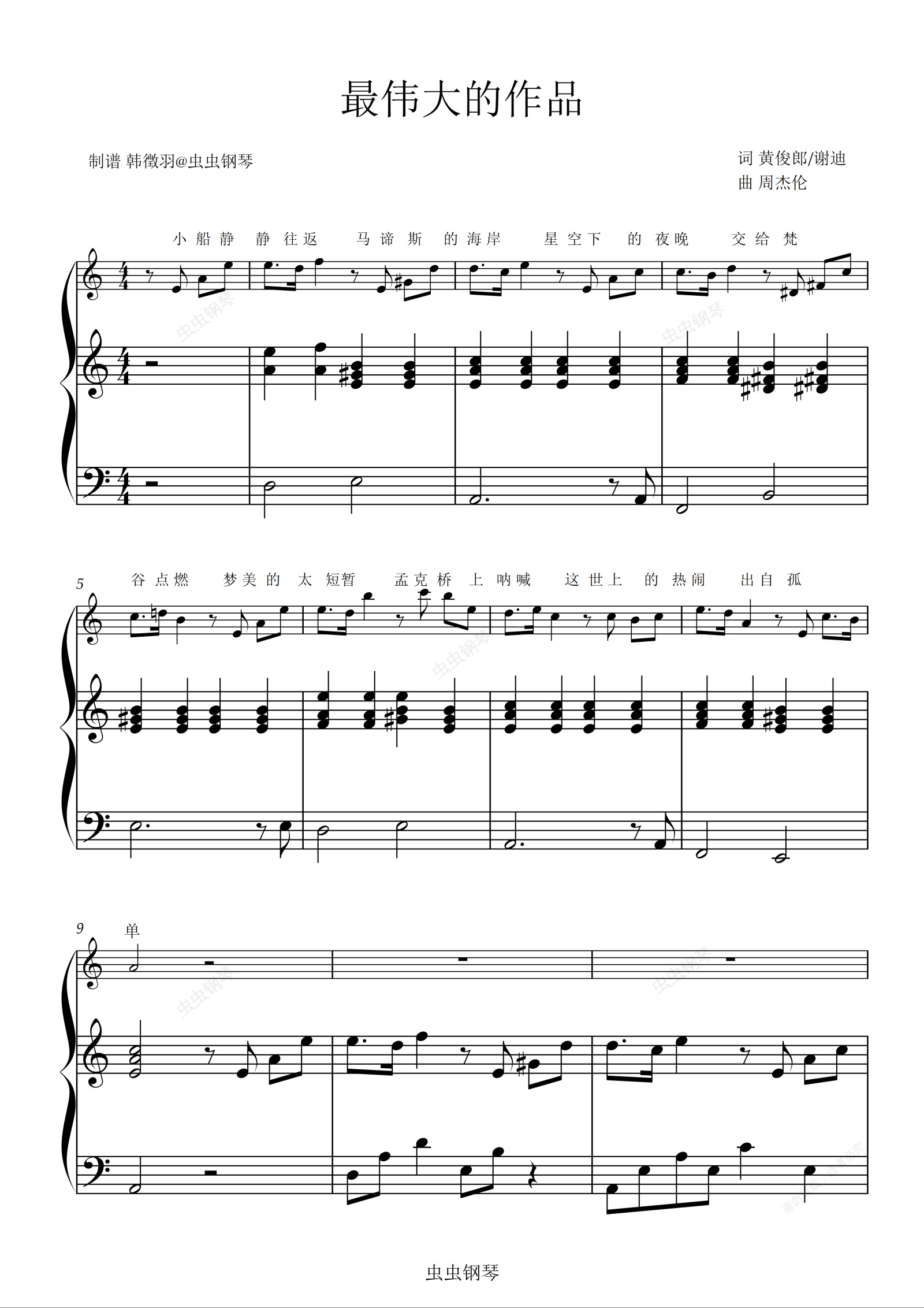 钢琴谱:最伟大的作品 C调副歌弹唱版 带指法
