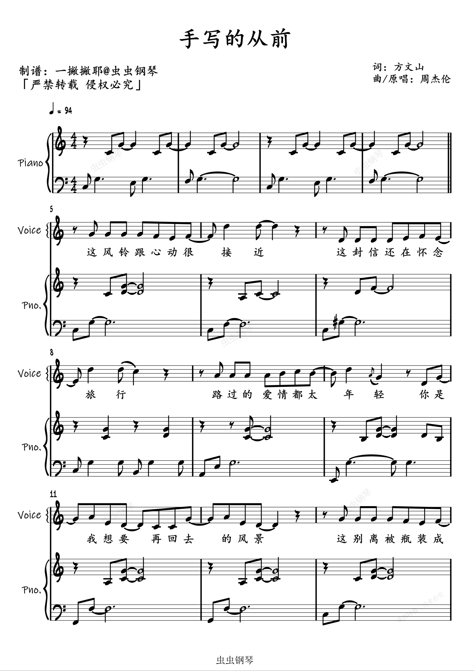 钢琴谱:手写的从前【弹唱附词极限还原】周杰伦「一撇撇耶」