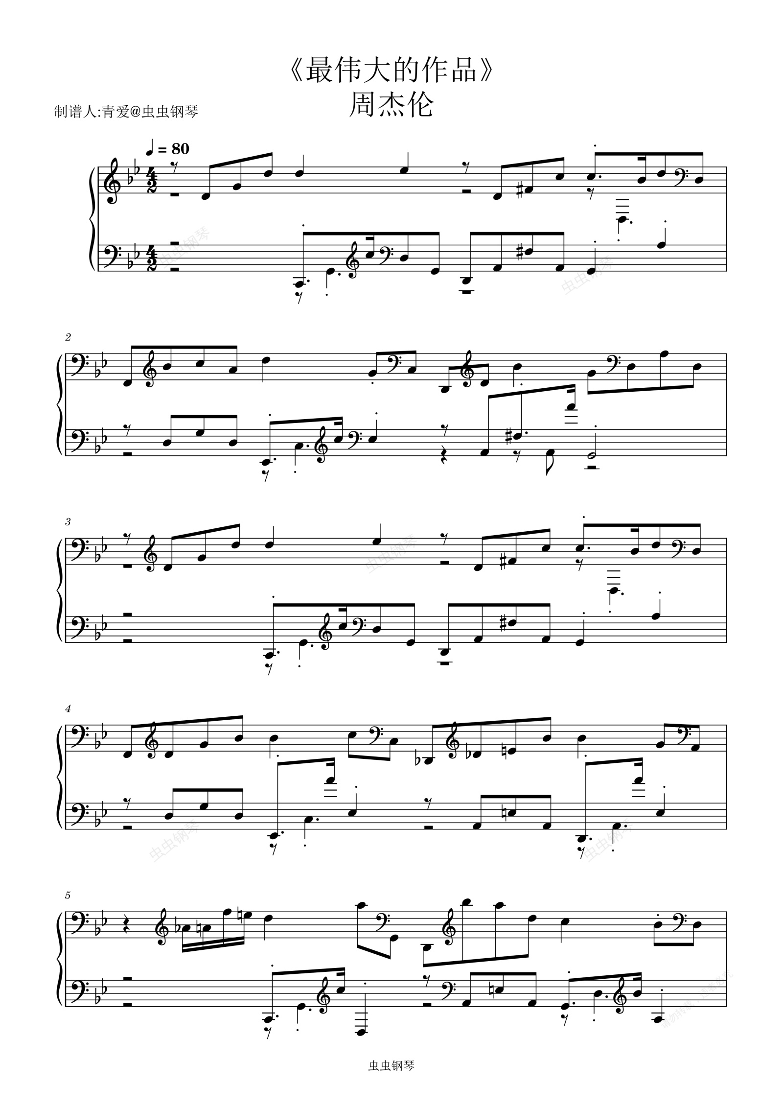 钢琴谱:Bb调《最伟大的作品》正曲易学版