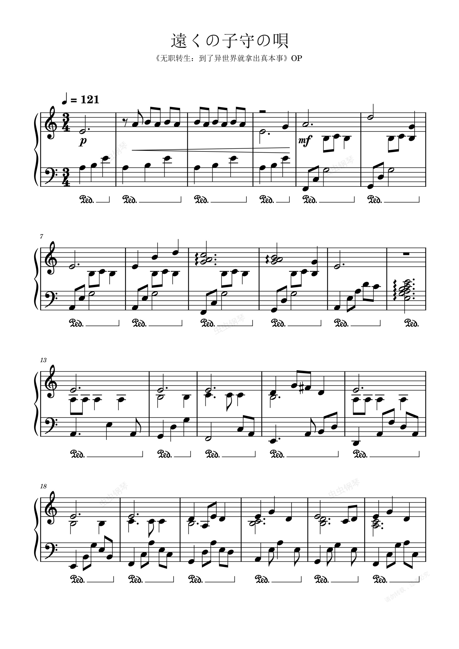 钢琴谱:遠くの子守の唄(《无职转生:到了异世界就拿出真本事》OP/片头曲)- 大原ゆい子