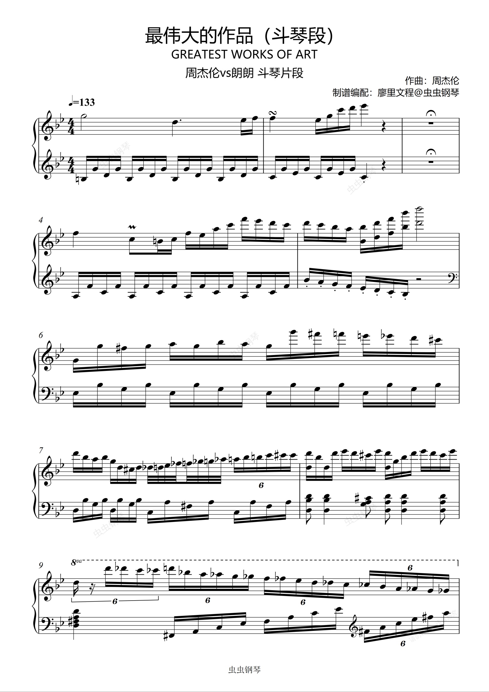 钢琴谱:《最伟大的作品》原版斗琴片段
