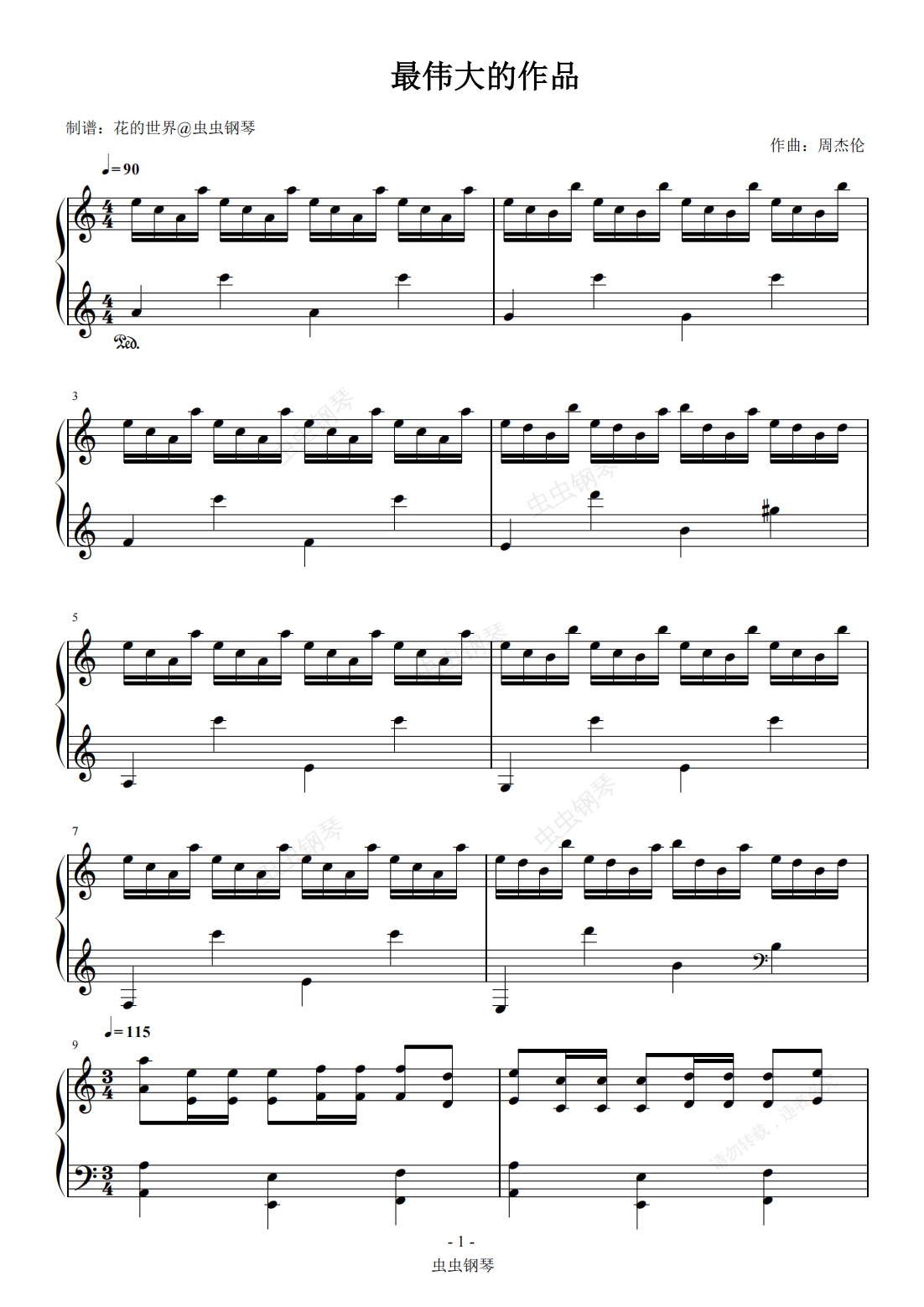 钢琴谱:最伟大的作品 C调简单版本 周杰伦