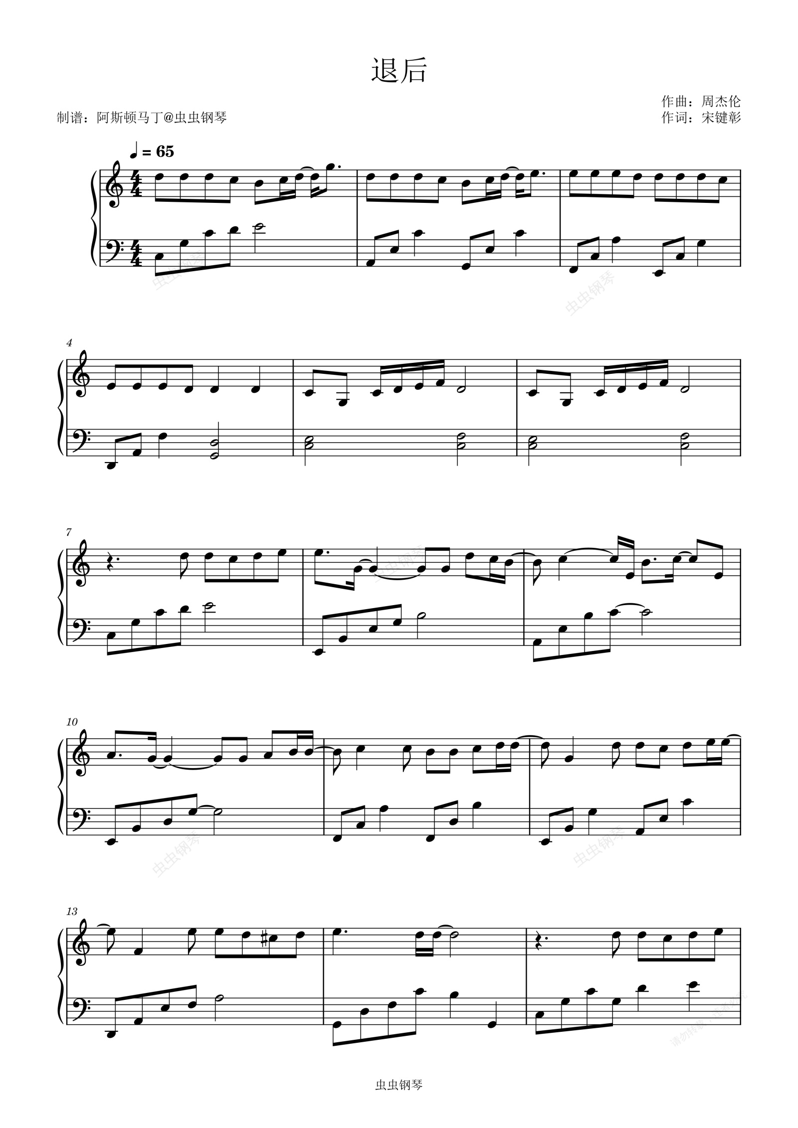 钢琴谱:退后 - 周杰伦【初学简易版】