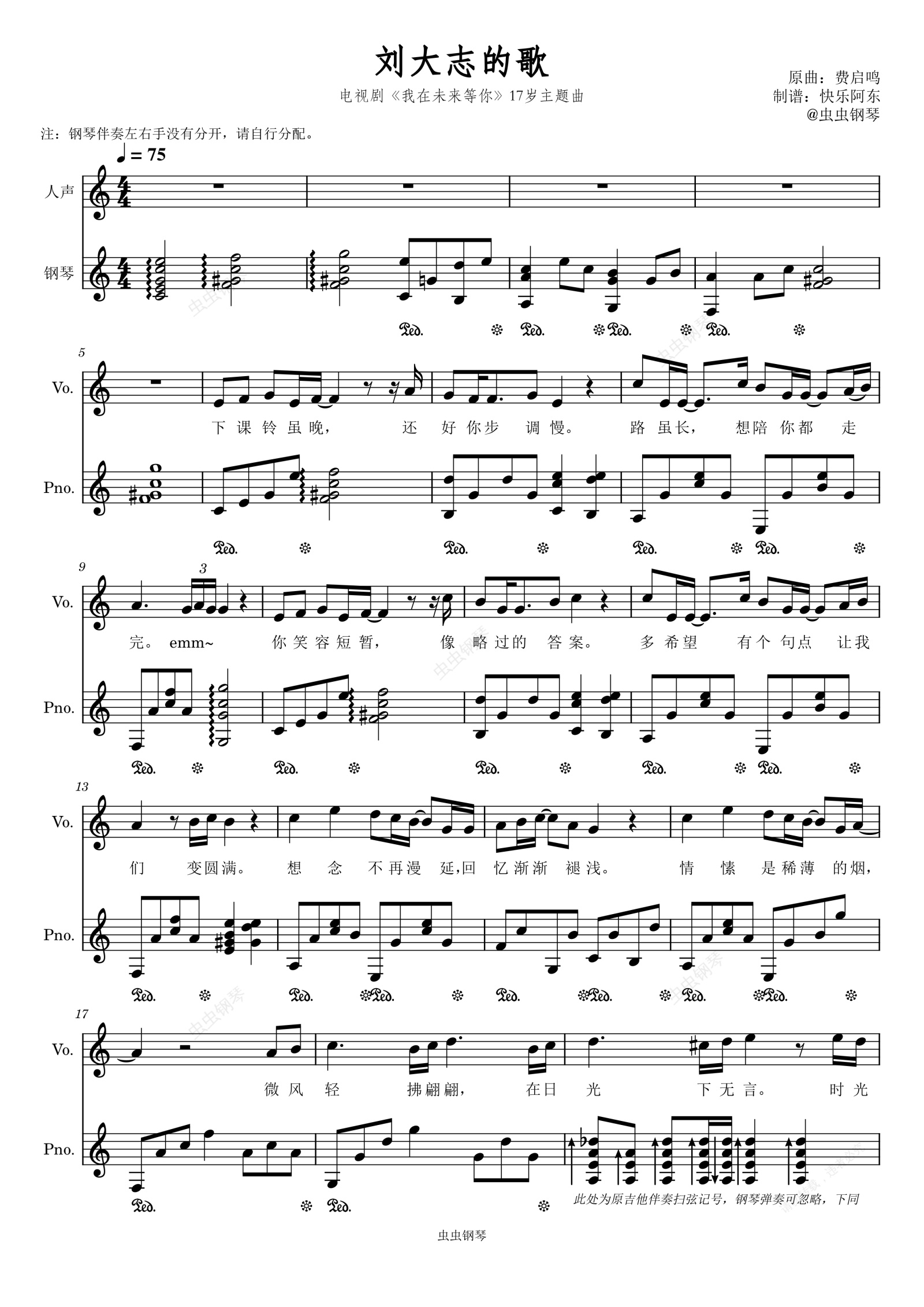 钢琴谱:刘大志的歌(电视剧《我在未来等你》)-费启鸣-钢琴弹唱