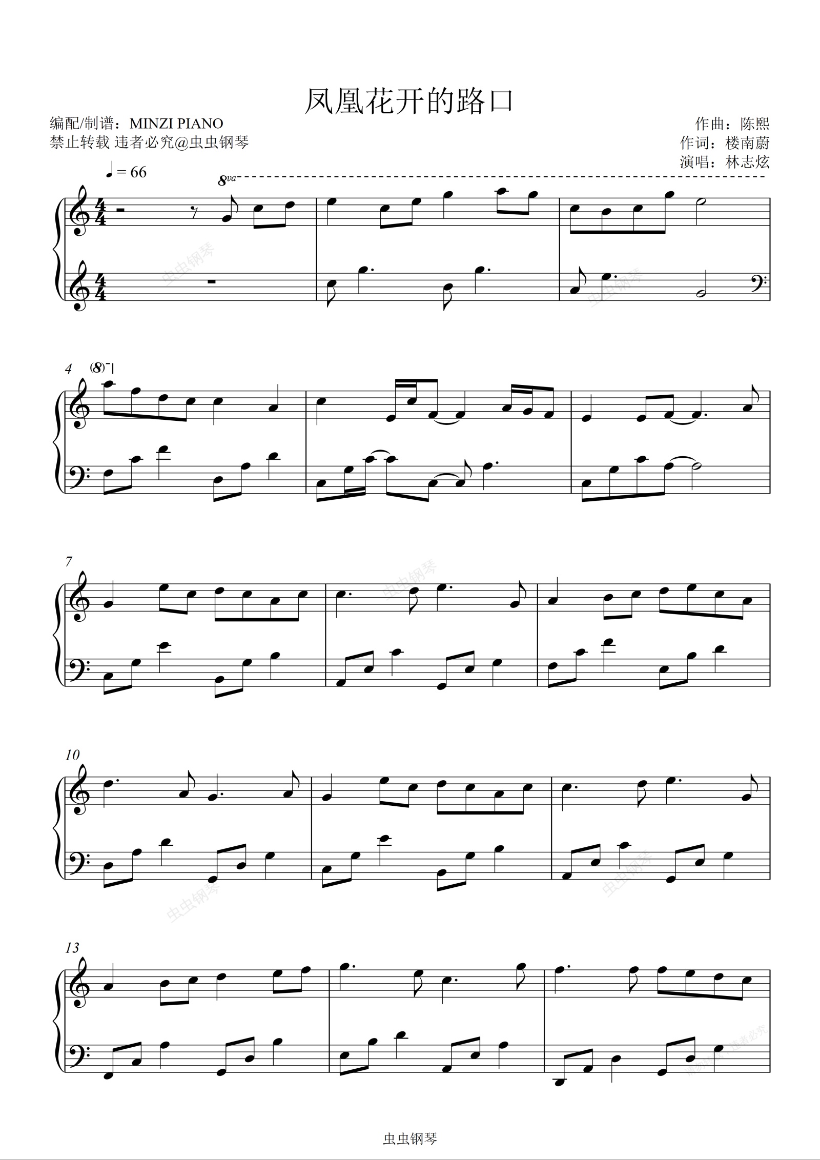 钢琴谱:林志炫《凤凰花开的路口》C调
