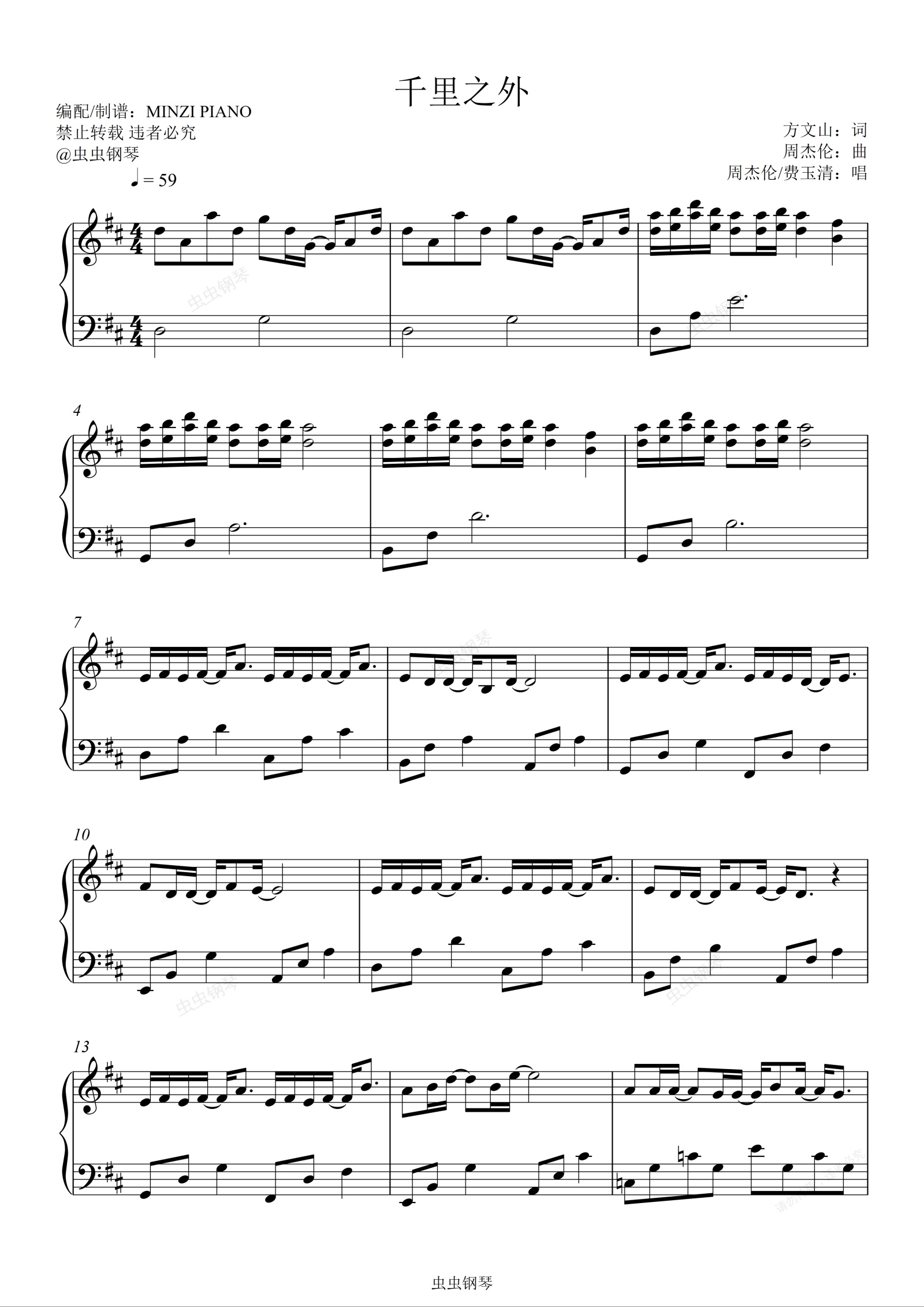钢琴谱:周杰伦《千里之外》原调