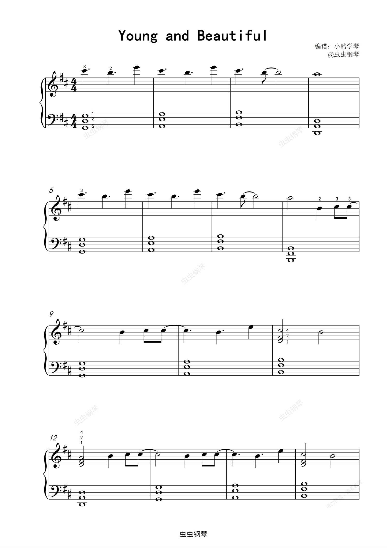 钢琴谱:Young And Beautiful-还原版——主页有演示视频