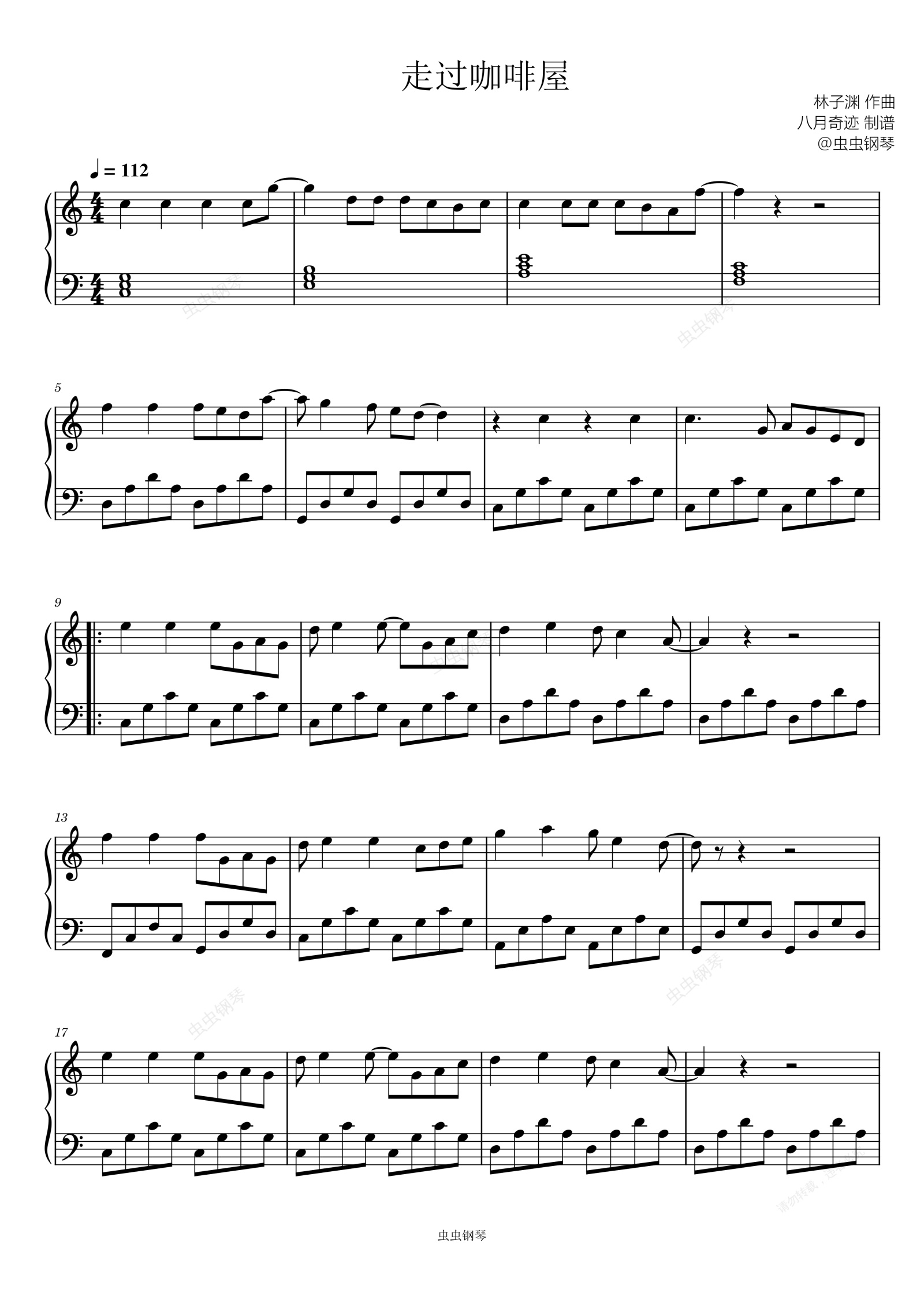 钢琴谱:走过咖啡屋 C大调