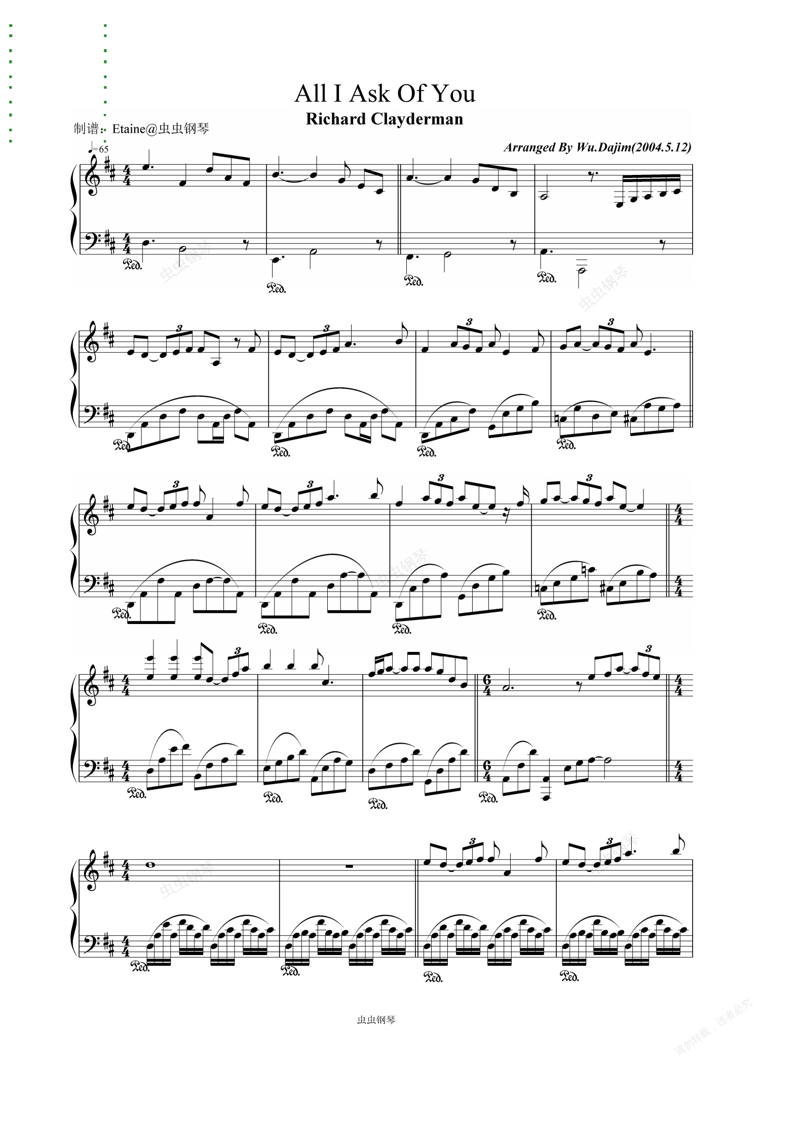 钢琴谱:All I Ask Of You Richard Clayderman 钢琴谱-理查德·克莱德曼