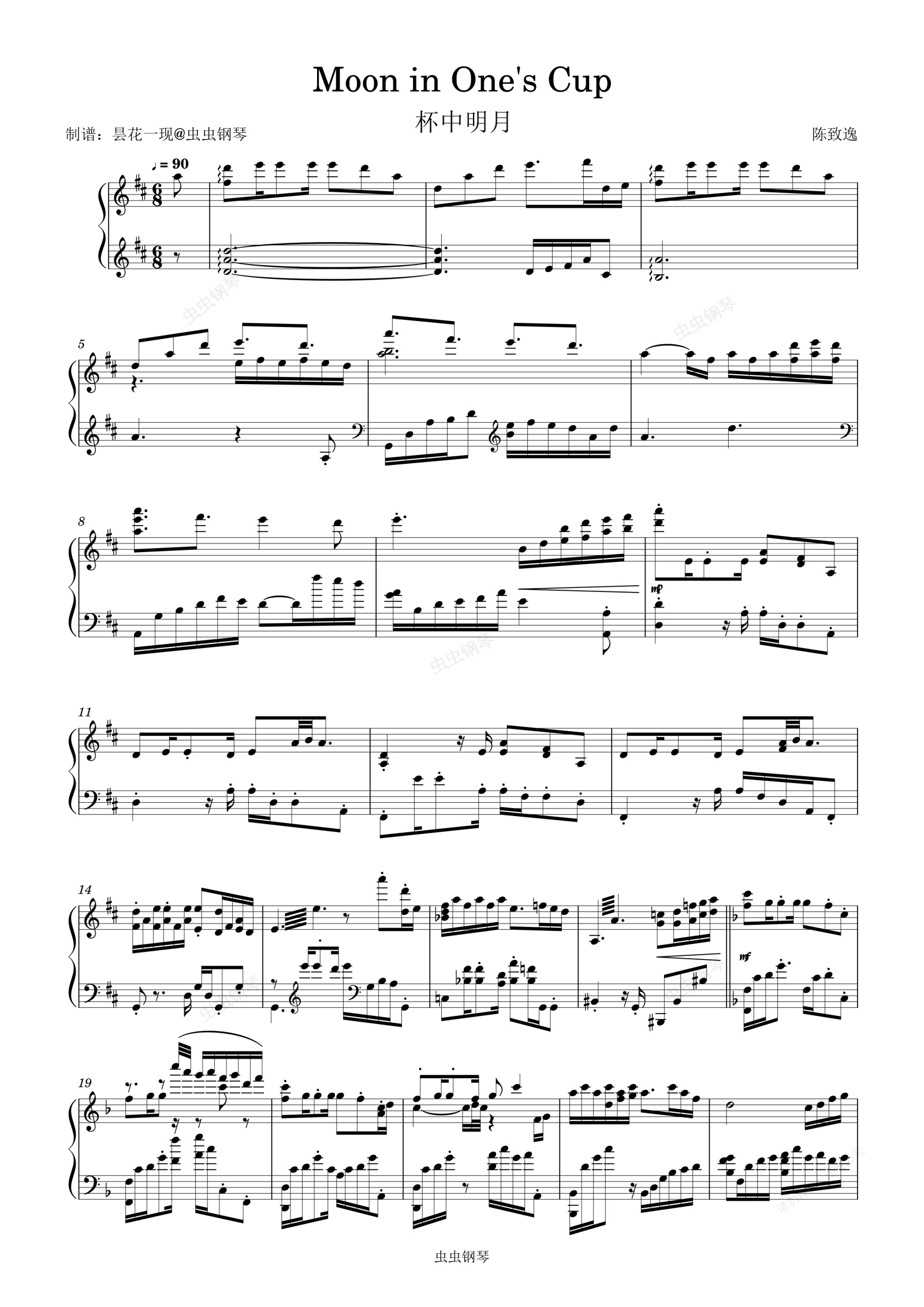 钢琴谱:杯中明月 Moon in One's Cup《原神》