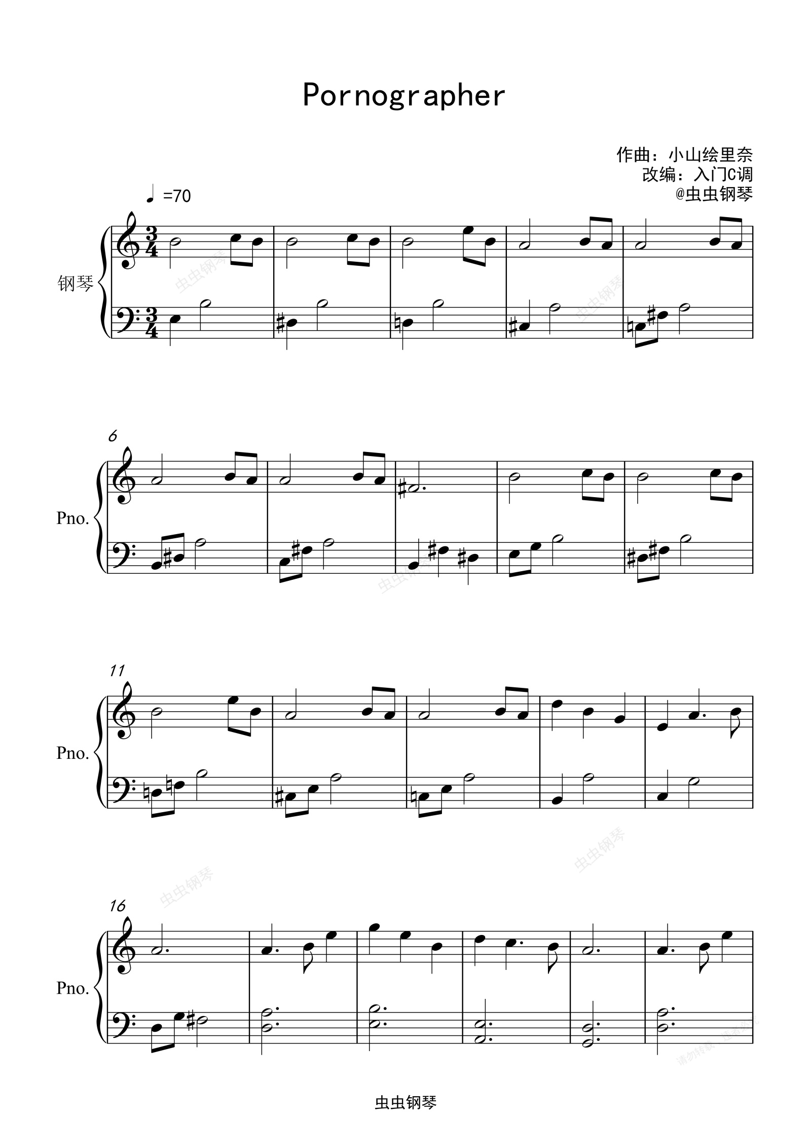 钢琴谱:《老司机系列》插曲《Pornographer》入门C调简单版