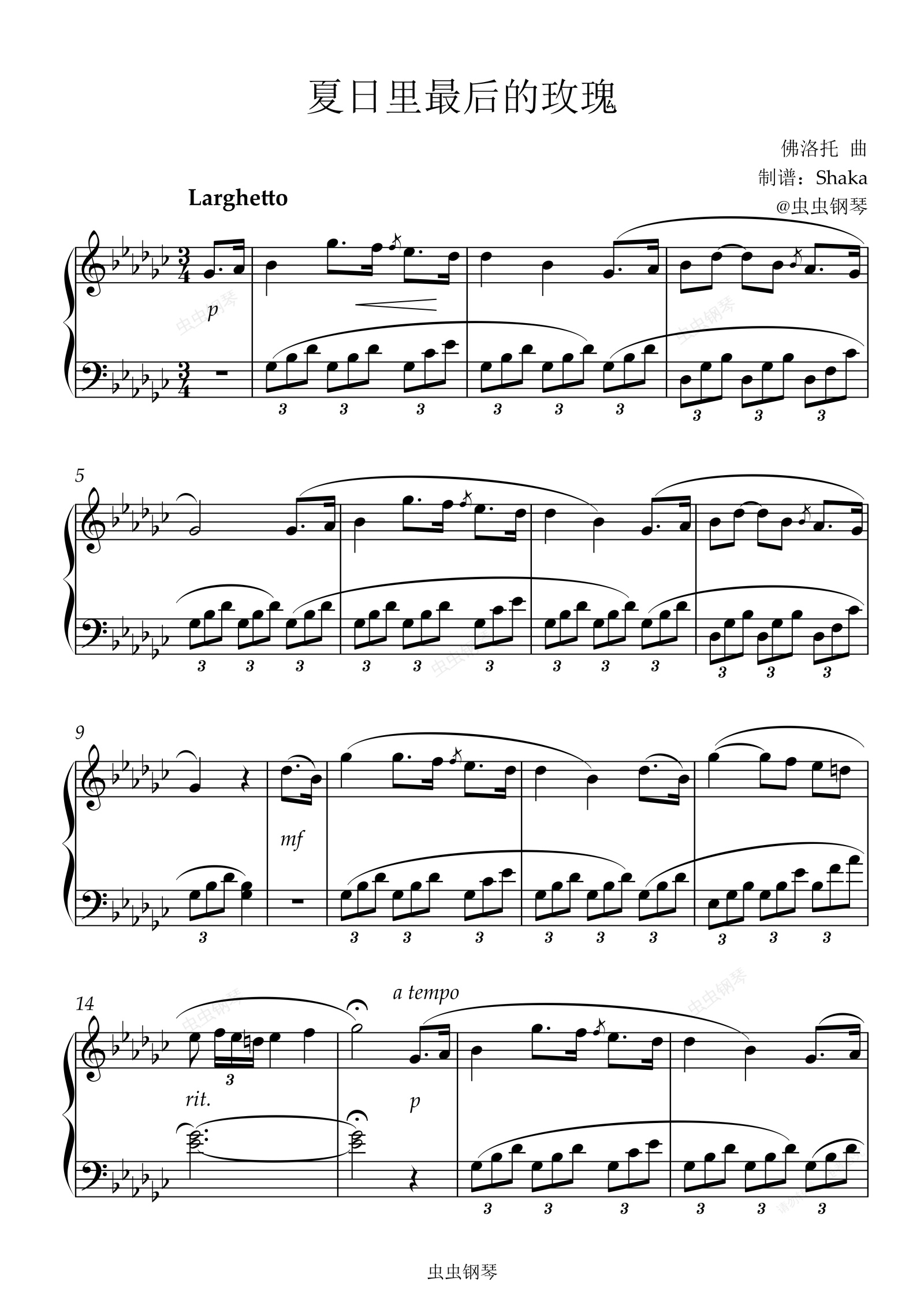 钢琴谱:夏日里最后的玫瑰 降G调较难版 ZYY 考级曲目