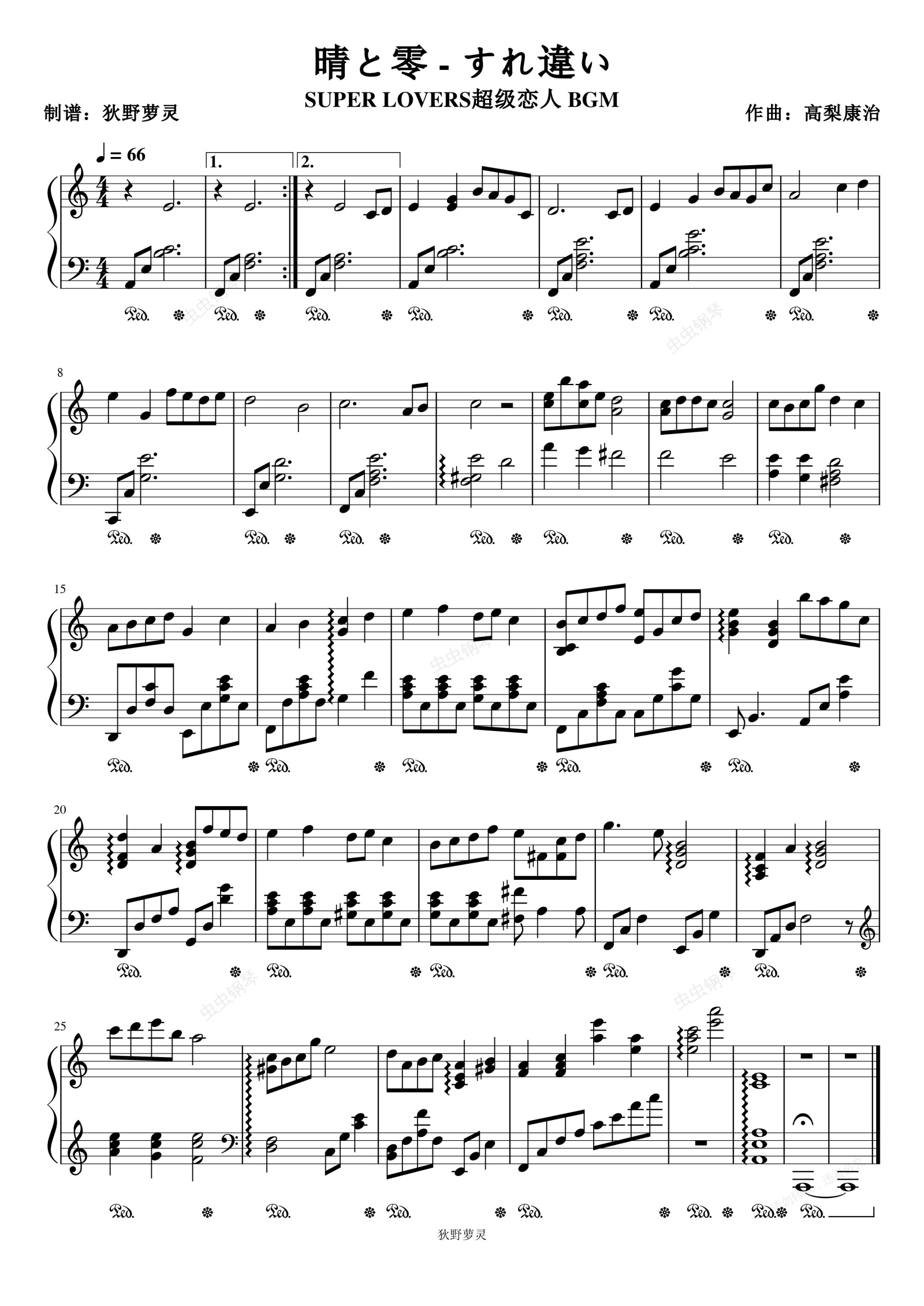 钢琴谱:晴と零 - すれ違い