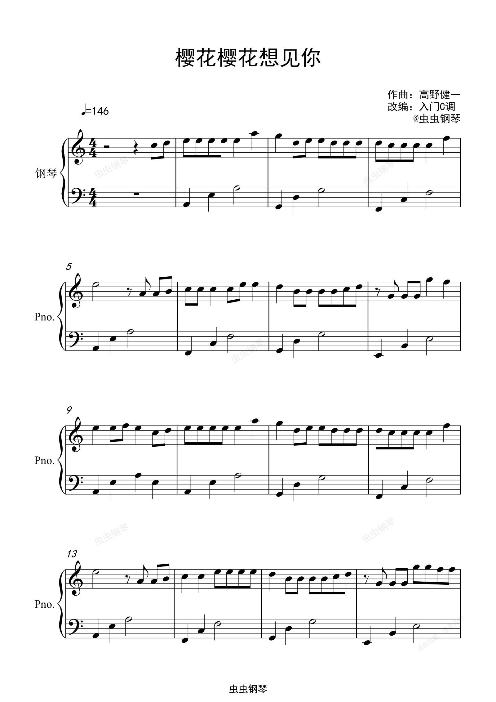 钢琴谱:RSP《樱花樱花想见你》入门C调简单版