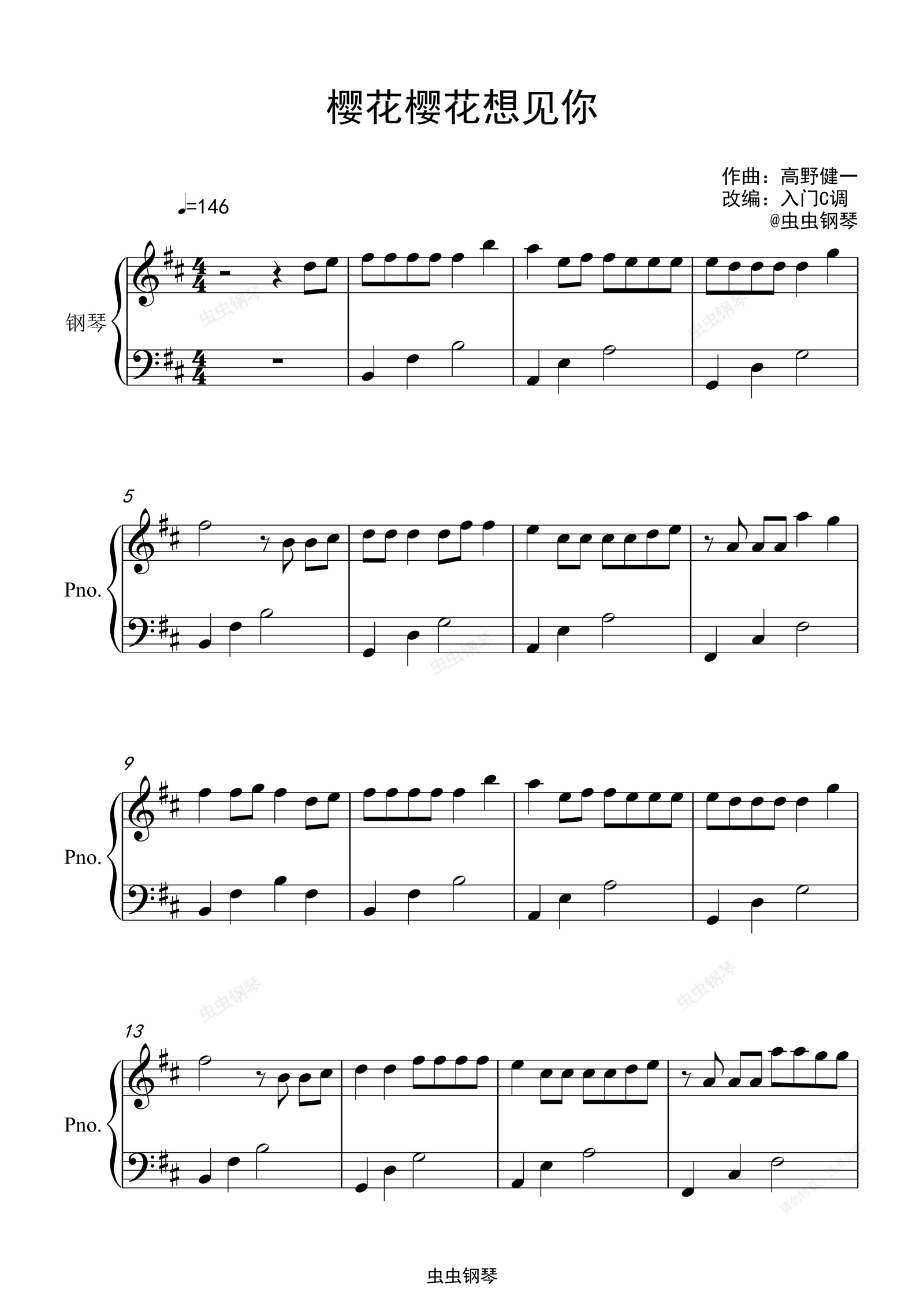 钢琴谱:RSP《樱花樱花想见你》D调入门简单版