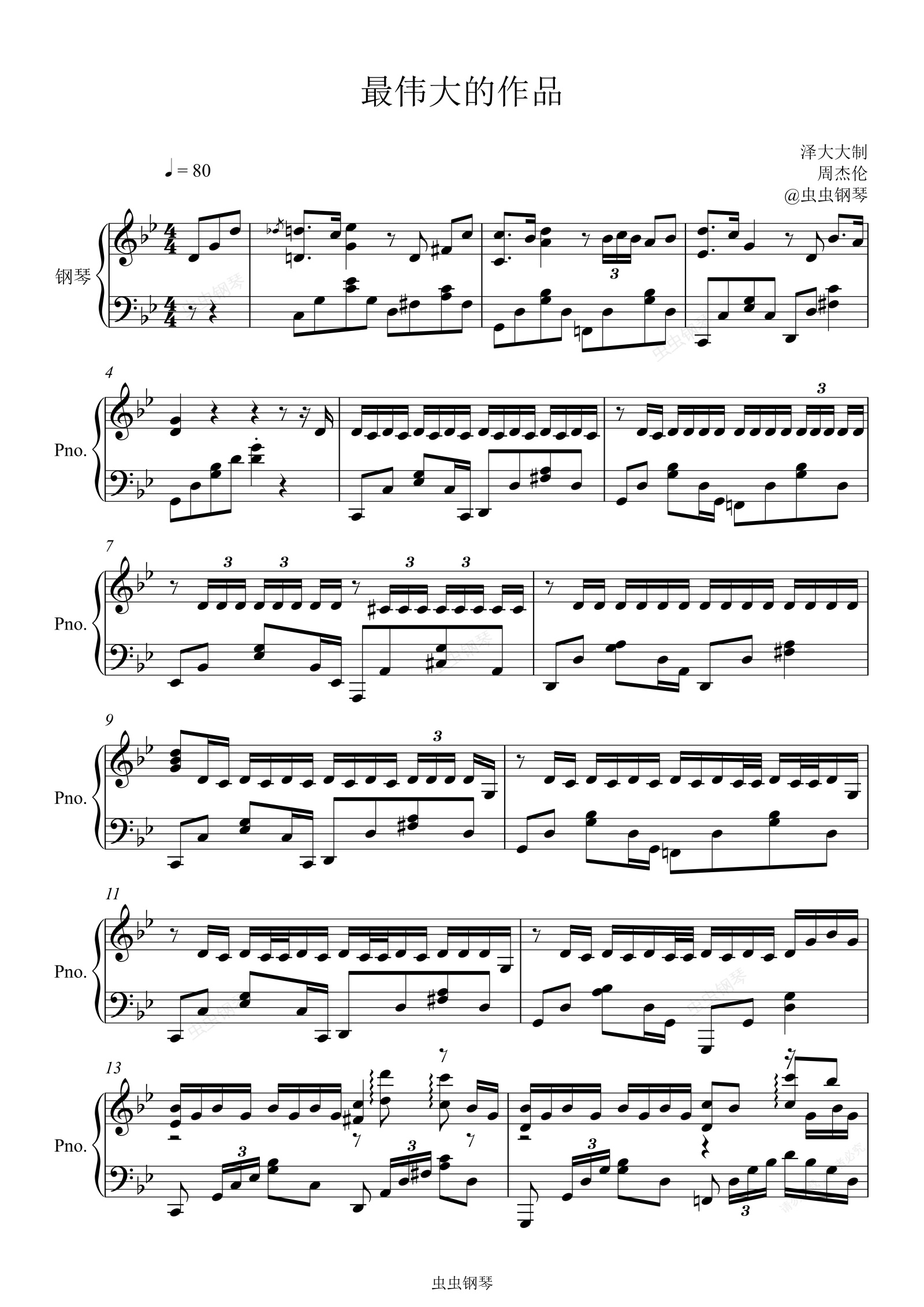 钢琴谱:最伟大的作品【爆燃完整独奏版】泽大大 周杰伦
